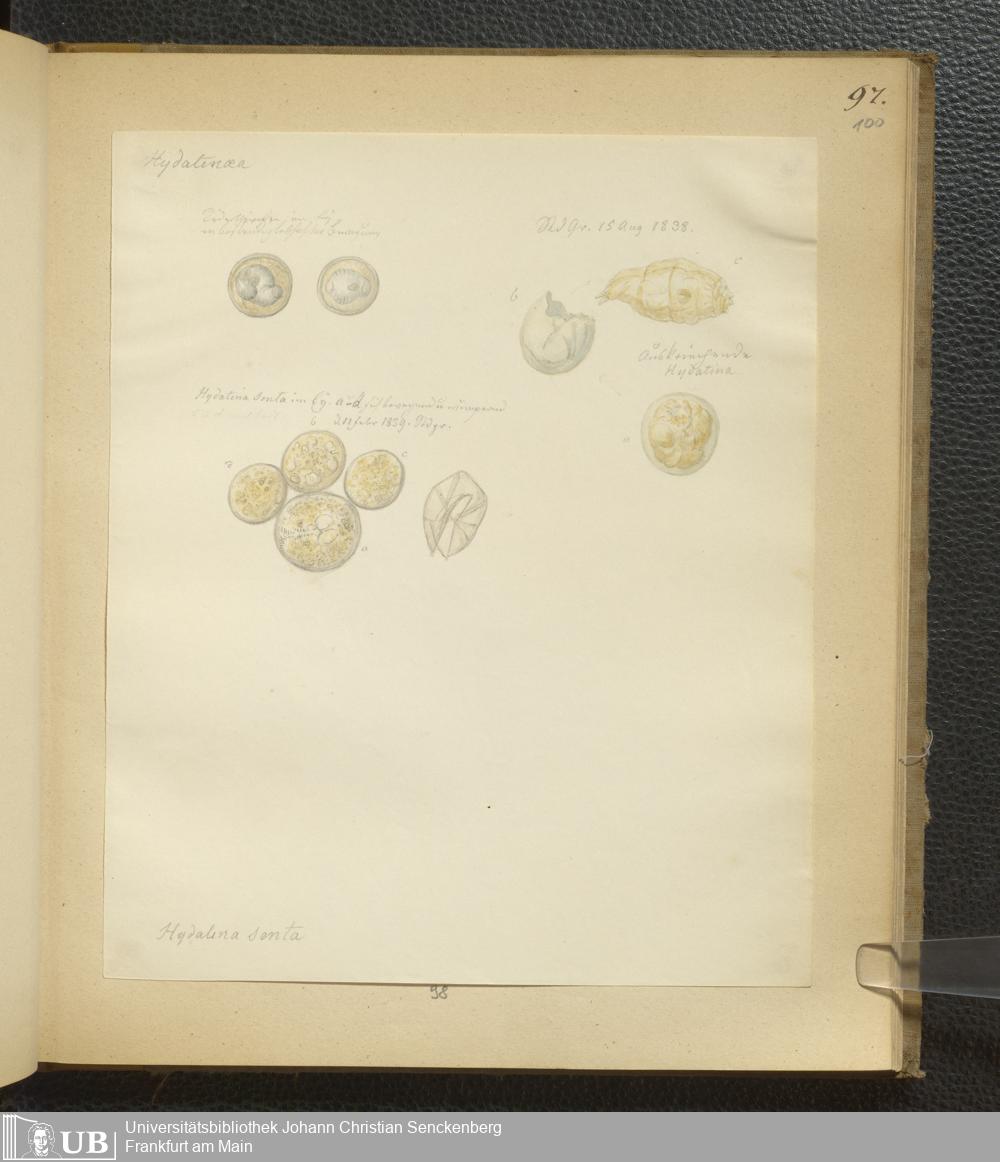 Soe 65 - Infusorien : beobachtet und gezeichnet, nach Ehrenberg bestim[m]t und geordnet von Dr. W. Soemmerring. Süßwasser Polypen, Entomostraca, Planarien u.a.m. Meistens in den Jahren 1838, 1839 u. 1840 gesam[m]elt u. gemalt