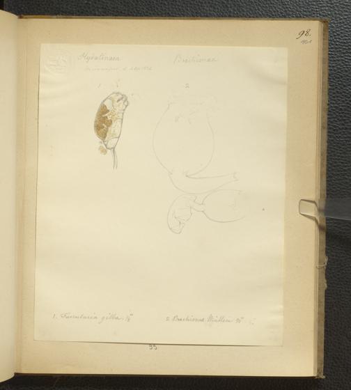 Soe 65 - Infusorien : beobachtet und gezeichnet, nach Ehrenberg bestim[m]t und geordnet von Dr. W. Soemmerring. Süßwasser Polypen, Entomostraca, Planarien u.a.m. Meistens in den Jahren 1838, 1839 u. 1840 gesam[m]elt u. gemalt