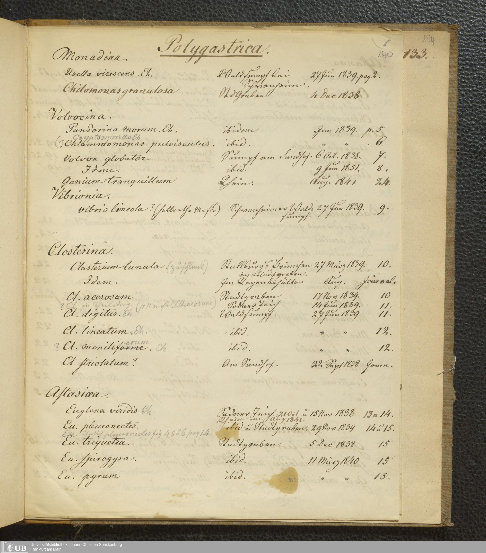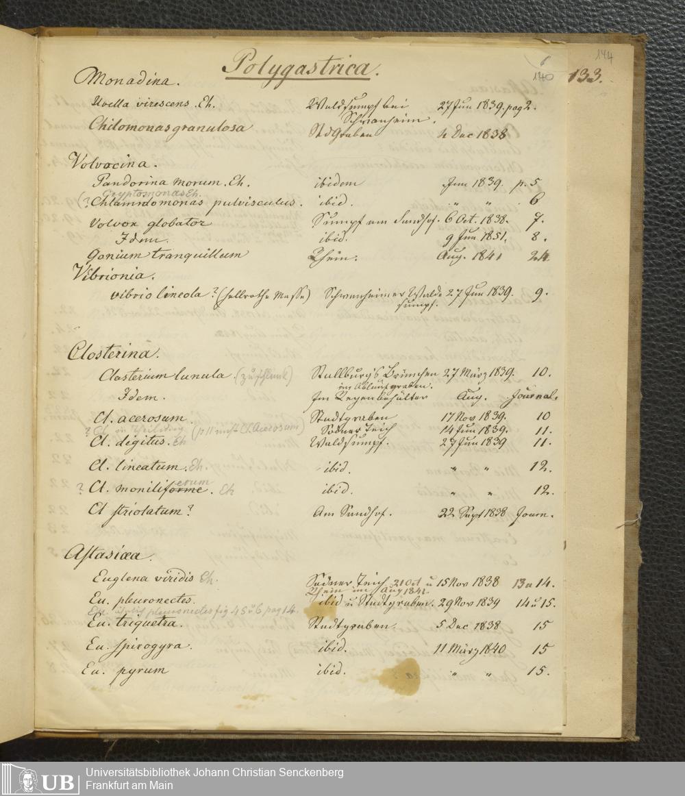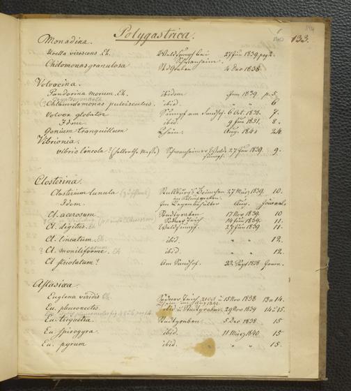 Soe 65 - Infusorien : beobachtet und gezeichnet, nach Ehrenberg bestim[m]t und geordnet von Dr. W. Soemmerring. Süßwasser Polypen, Entomostraca, Planarien u.a.m. Meistens in den Jahren 1838, 1839 u. 1840 gesam[m]elt u. gemalt