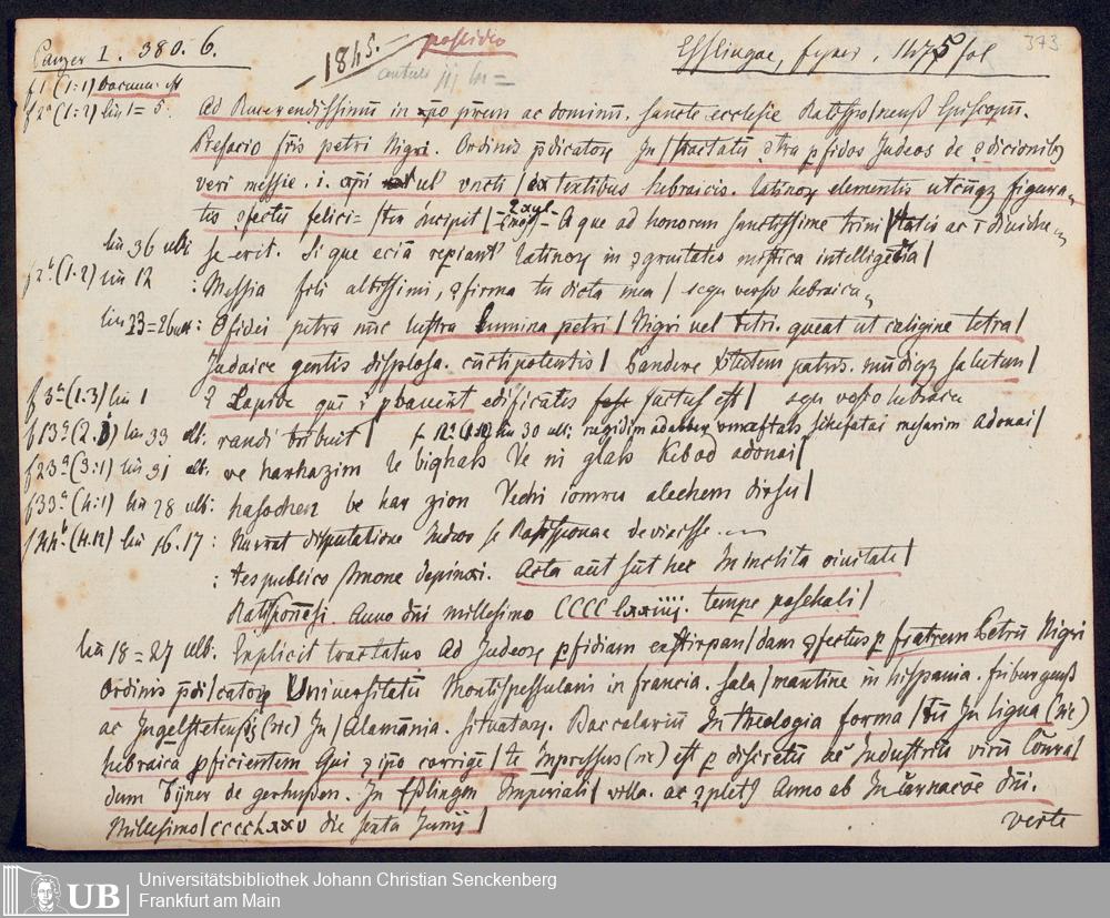Ms. Ff. G. Kloß V.1.1 - Materialien zu einem Katalog der Drucker des 15. und frühen 16. Jahrhunderts. Nach dem Alphabet der Druckorte, innerhalb nach dem Drucker