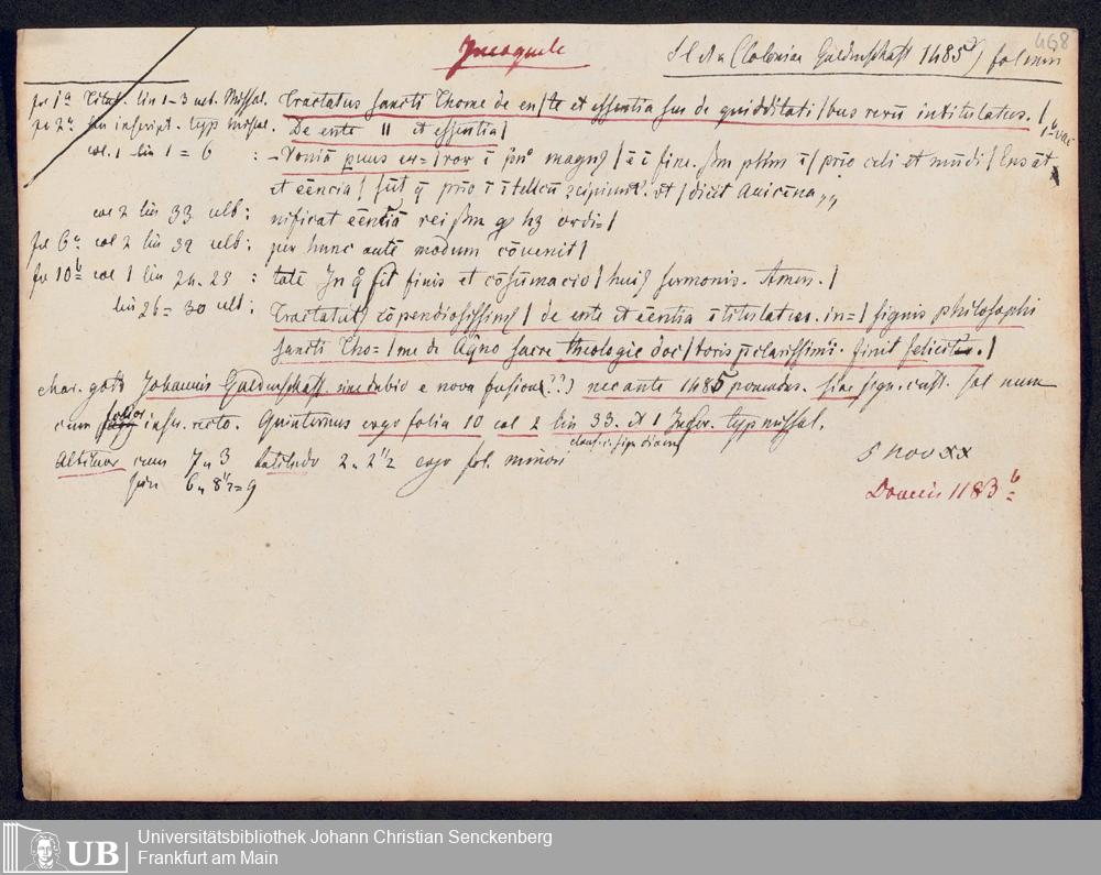 Ms. Ff. G. Kloß V.1.1 - Materialien zu einem Katalog der Drucker des 15. und frühen 16. Jahrhunderts. Nach dem Alphabet der Druckorte, innerhalb nach dem Drucker