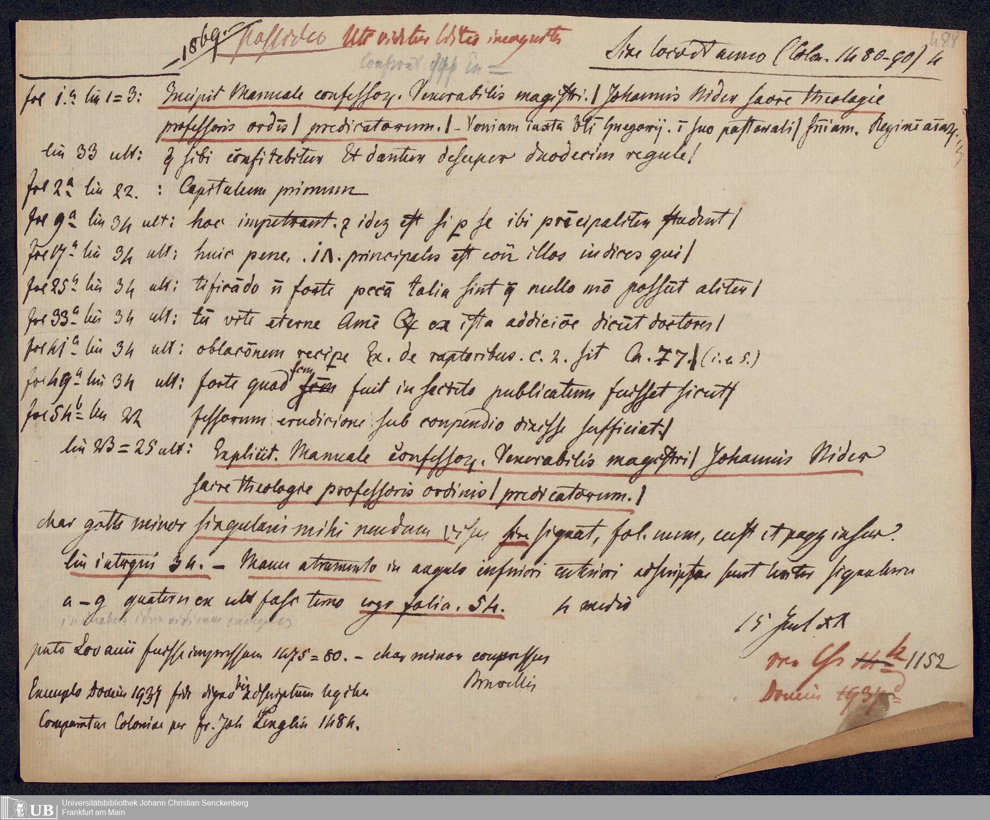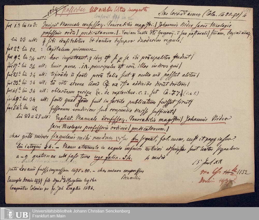 Ms. Ff. G. Kloß V.1.1 - Materialien zu einem Katalog der Drucker des 15. und frühen 16. Jahrhunderts. Nach dem Alphabet der Druckorte, innerhalb nach dem Drucker