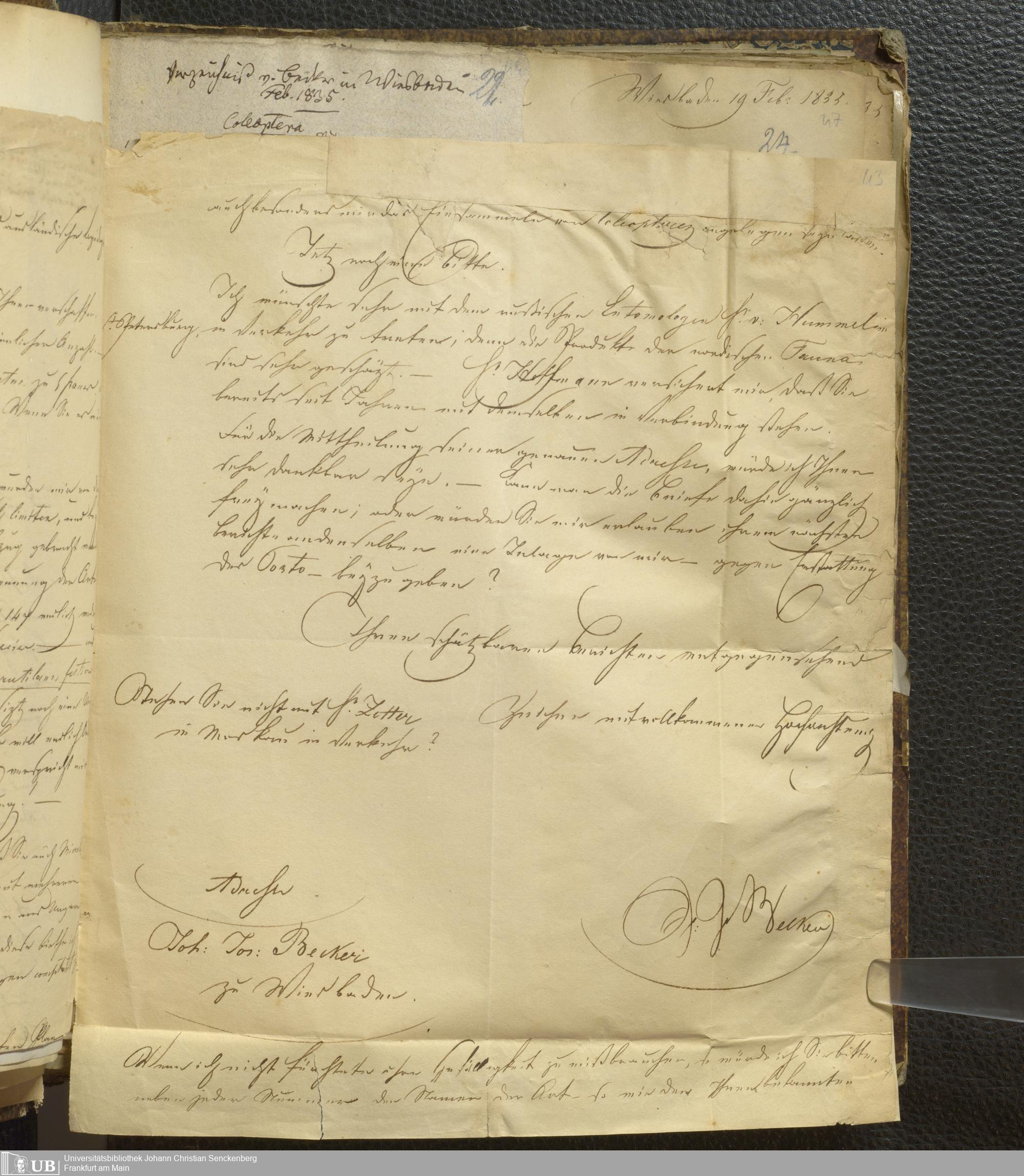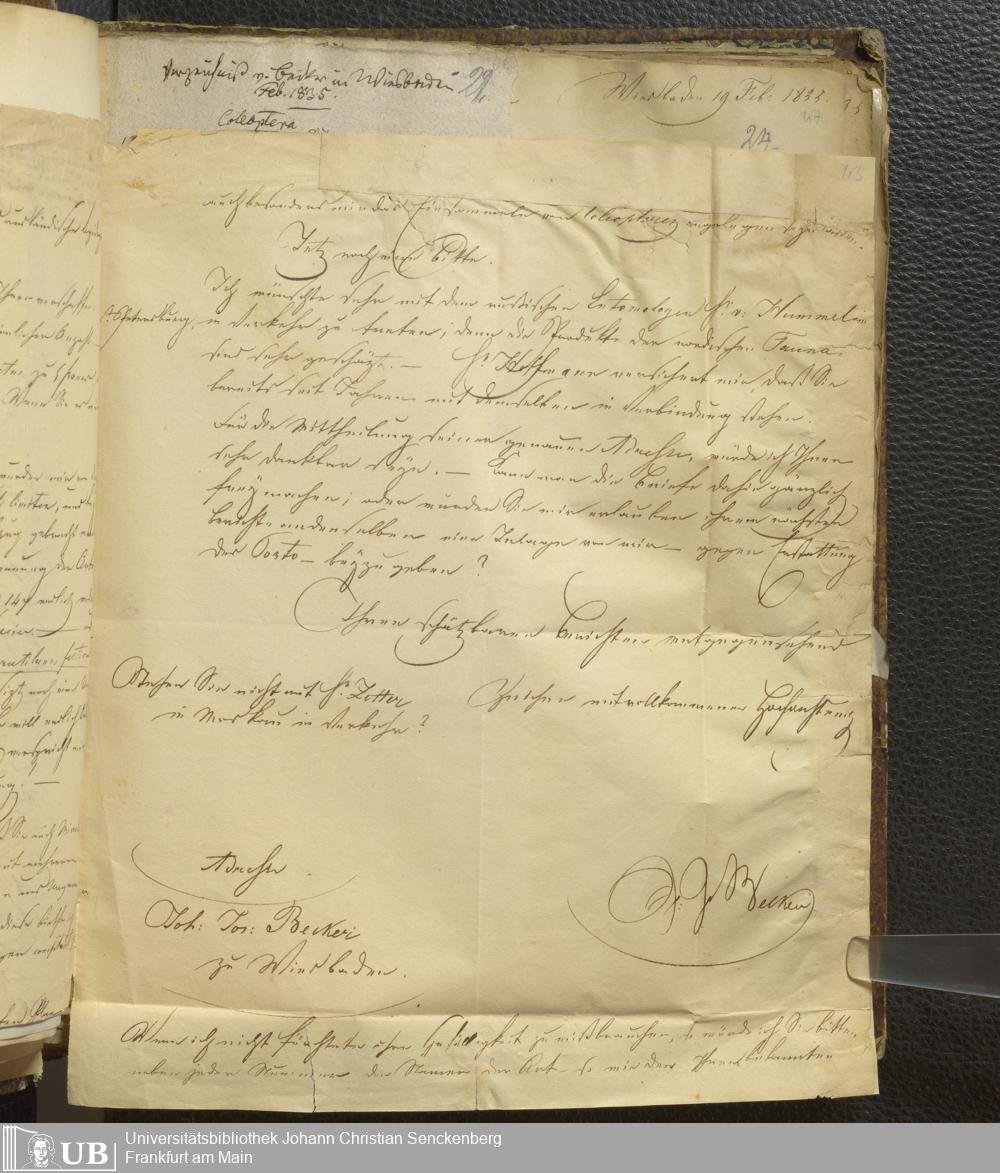4˚ Hs 12 Bd. 1 - Entomologische Correspondenz von Karl Heinrich Georg von Heyden. A/B