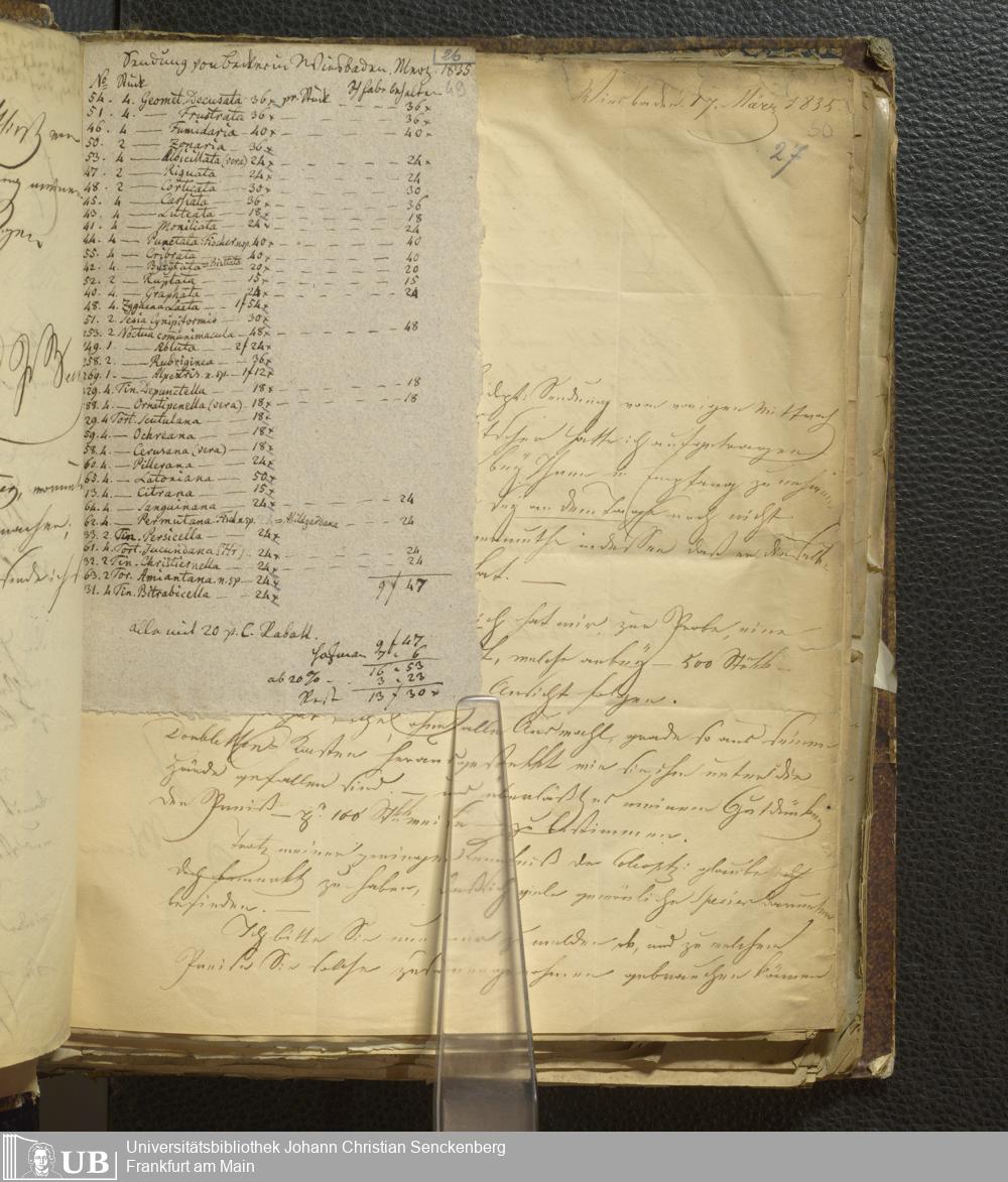 4˚ Hs 12 Bd. 1 - Entomologische Correspondenz von Karl Heinrich Georg von Heyden. A/B