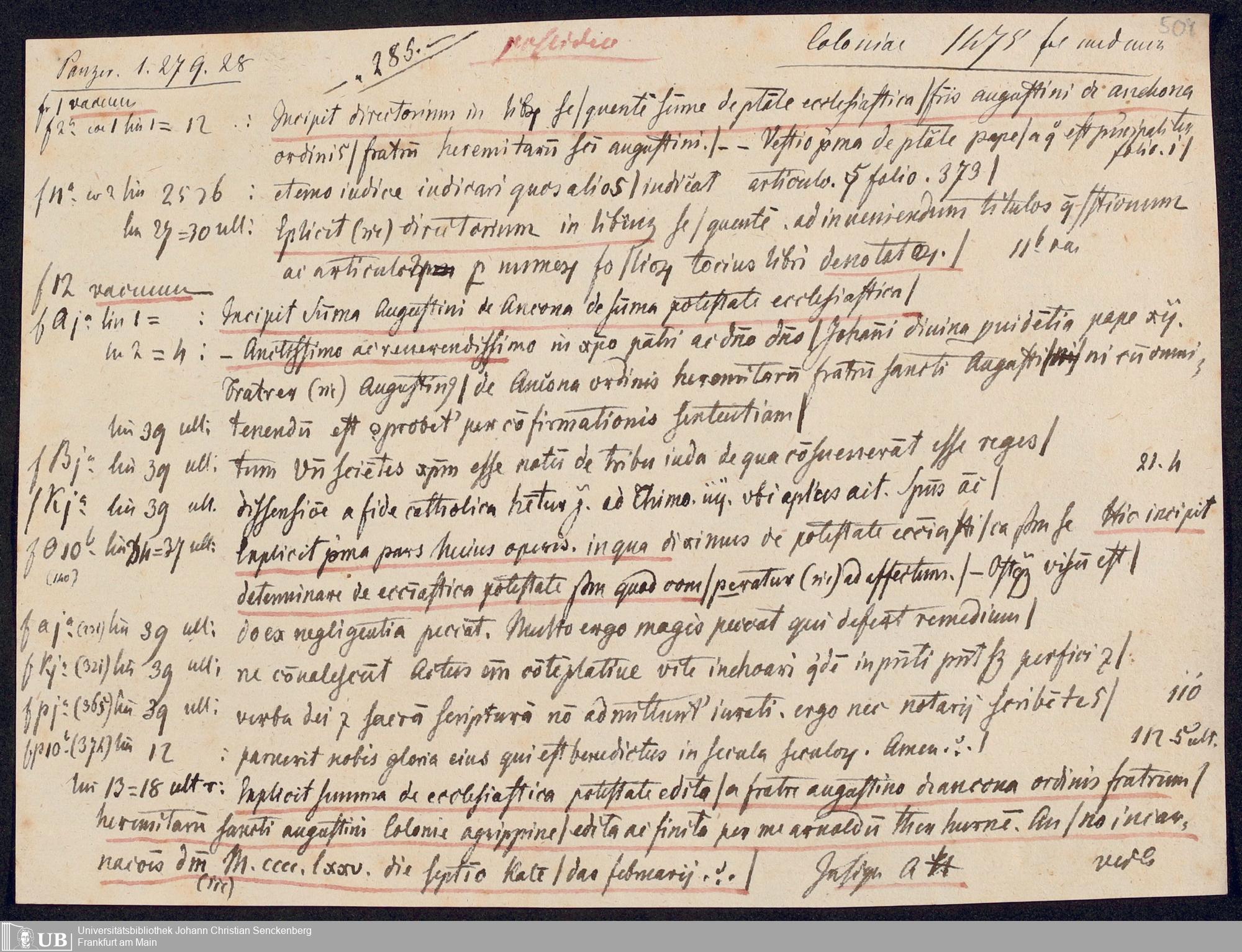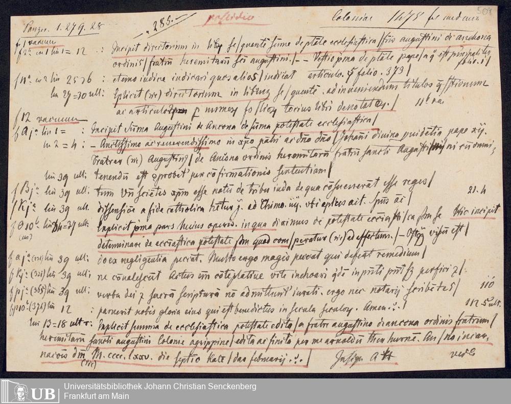 Ms. Ff. G. Kloß V.1.1 - Materialien zu einem Katalog der Drucker des 15. und frühen 16. Jahrhunderts. Nach dem Alphabet der Druckorte, innerhalb nach dem Drucker