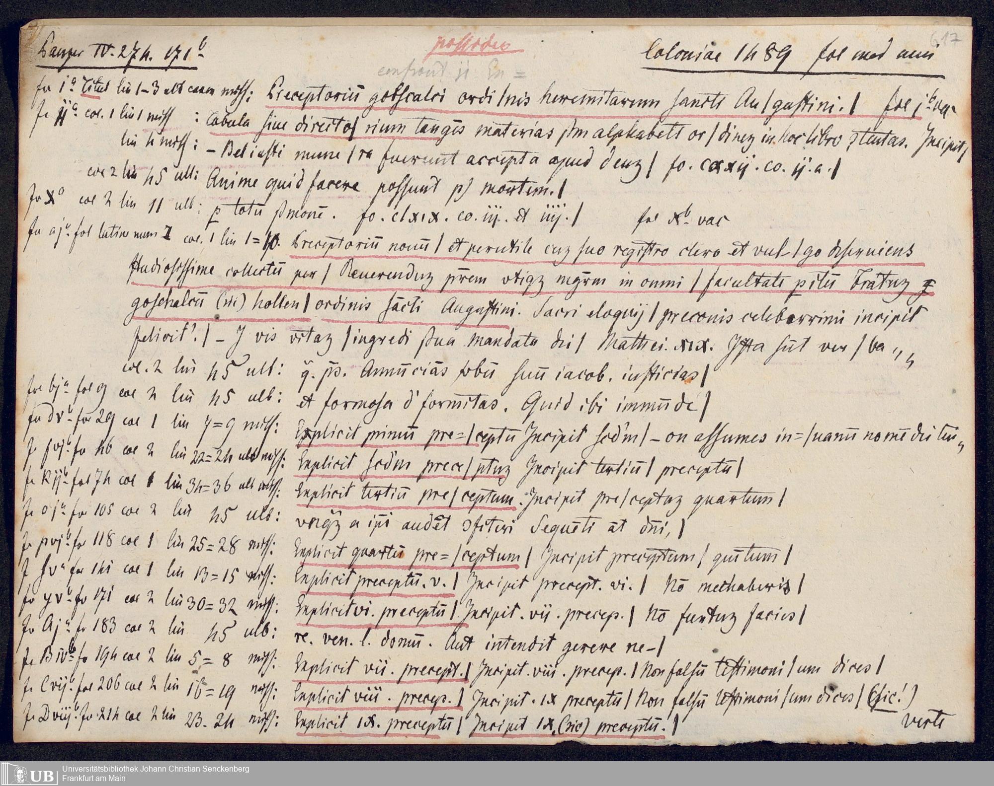 Ms. Ff. G. Kloß V.1.1 - Materialien zu einem Katalog der Drucker des 15. und frühen 16. Jahrhunderts. Nach dem Alphabet der Druckorte, innerhalb nach dem Drucker