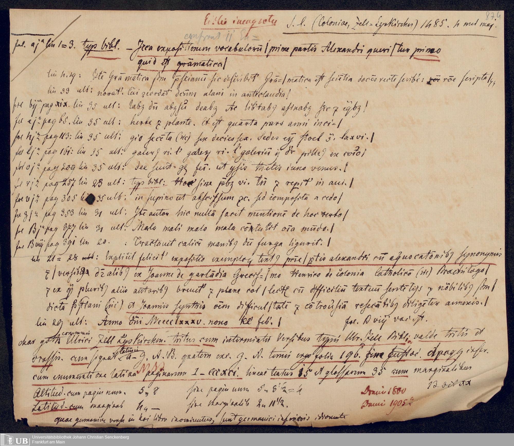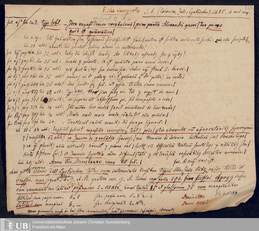 Ms. Ff. G. Kloß V.1.1 - Materialien zu einem Katalog der Drucker des 15. und frühen 16. Jahrhunderts. Nach dem Alphabet der Druckorte, innerhalb nach dem Drucker