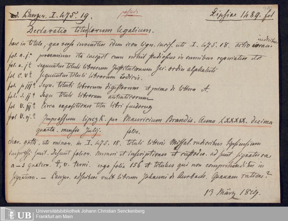 Ms. Ff. G. Kloß V.1.1 - Materialien zu einem Katalog der Drucker des 15. und frühen 16. Jahrhunderts. Nach dem Alphabet der Druckorte, innerhalb nach dem Drucker