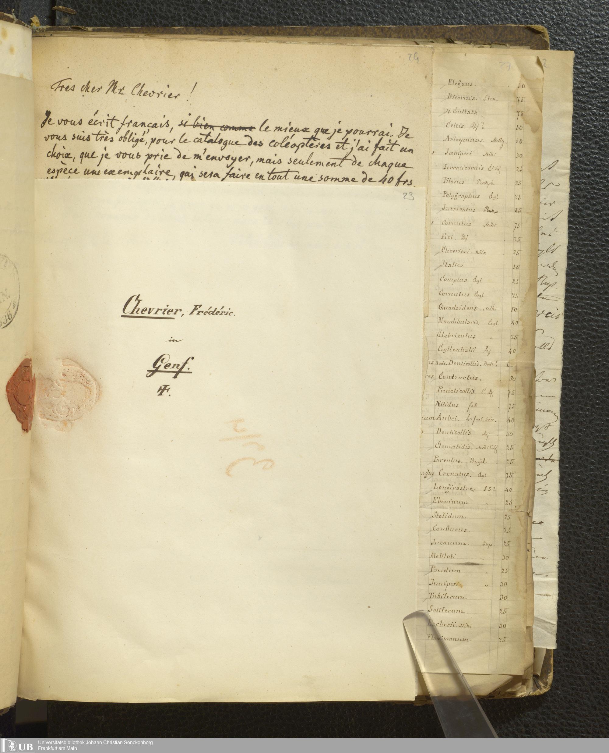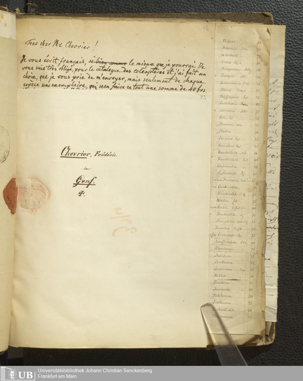 4˚ Hs 12 Bd. 2 - Entomologische Correspondenz von Karl Heinrich Georg von Heyden. C/F