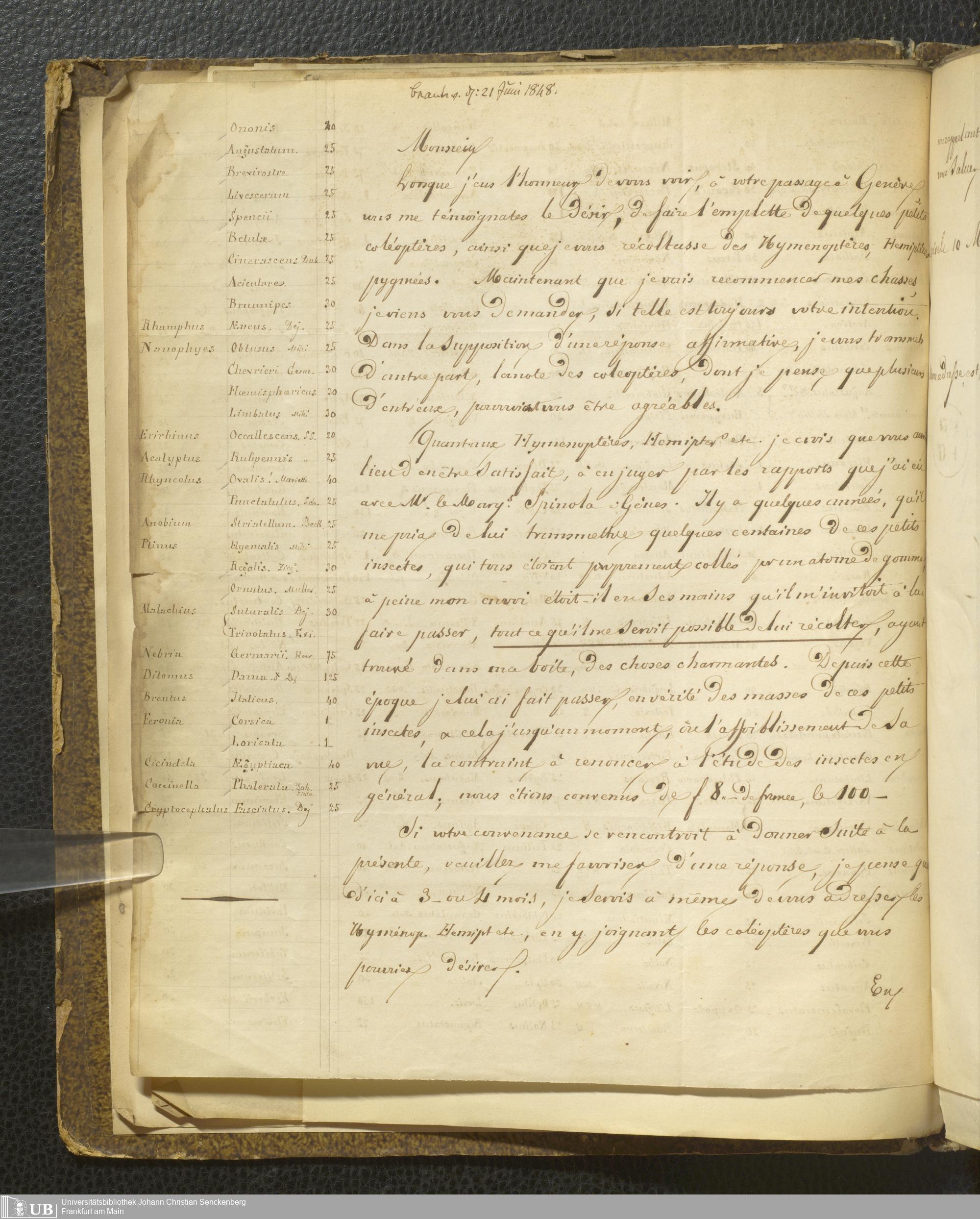 4˚ Hs 12 Bd. 2 - Entomologische Correspondenz von Karl Heinrich Georg von Heyden. C/F