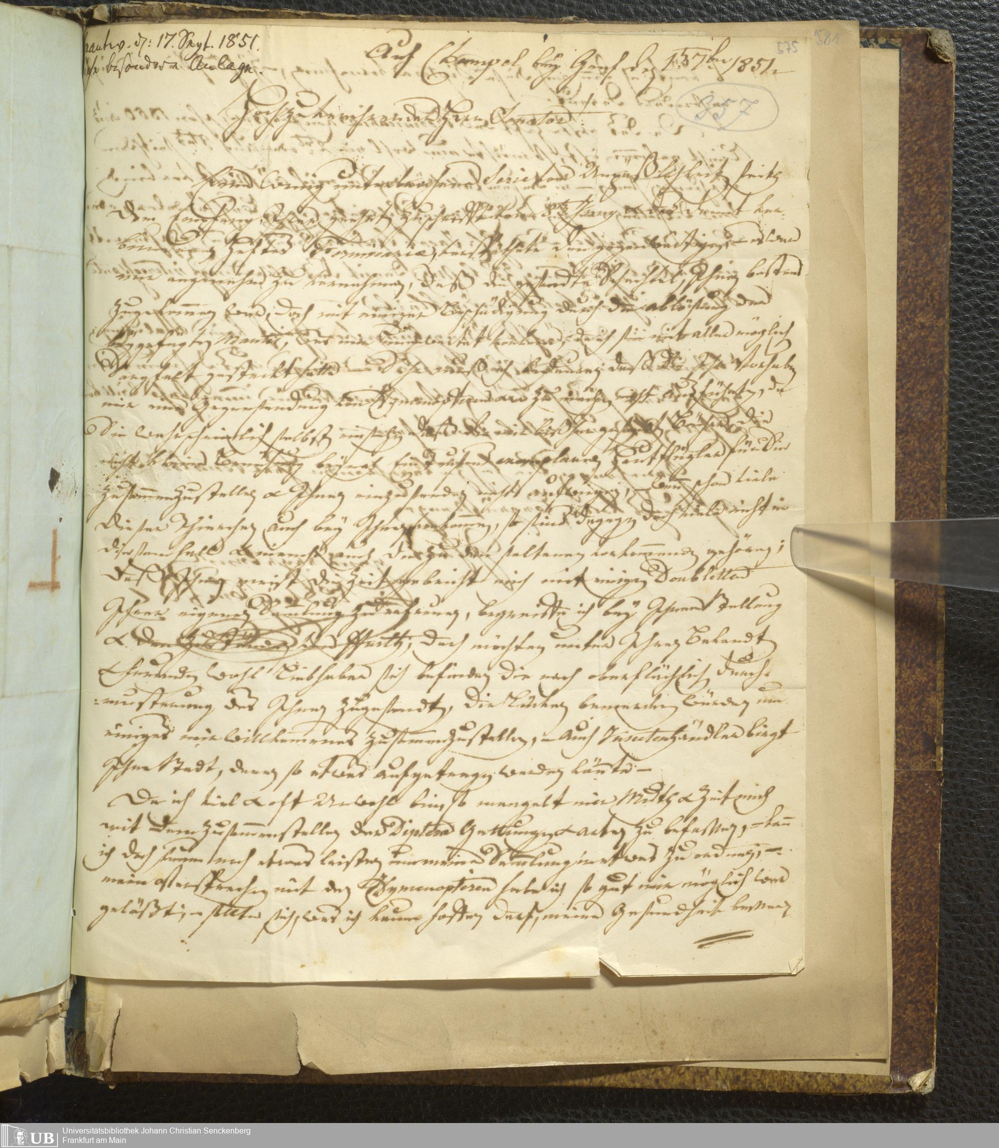 4˚ Hs 12 Bd. 1 - Entomologische Correspondenz von Karl Heinrich Georg von Heyden. A/B