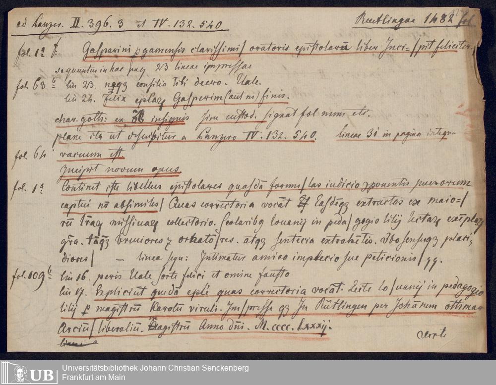 Ms. Ff. G. Kloß V.1.1 - Materialien zu einem Katalog der Drucker des 15. und frühen 16. Jahrhunderts. Nach dem Alphabet der Druckorte, innerhalb nach dem Drucker