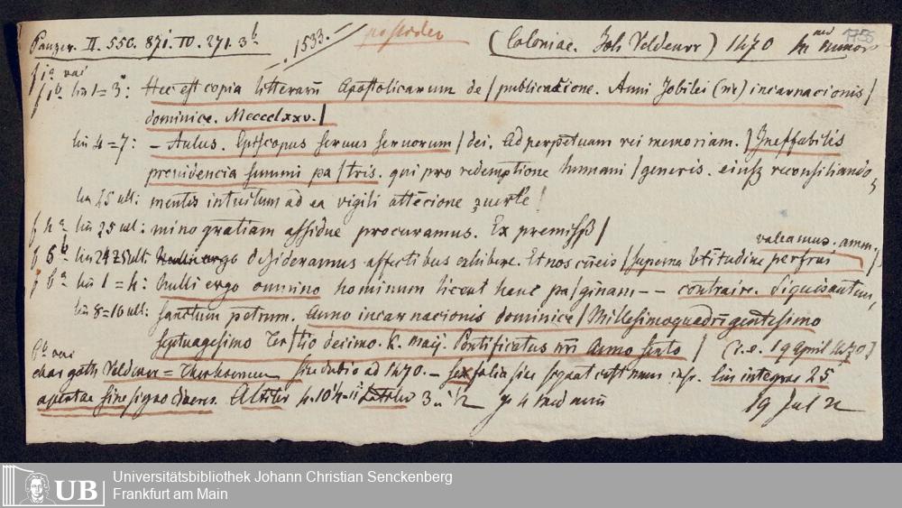 Ms. Ff. G. Kloß V.1.1 - Materialien zu einem Katalog der Drucker des 15. und frühen 16. Jahrhunderts. Nach dem Alphabet der Druckorte, innerhalb nach dem Drucker