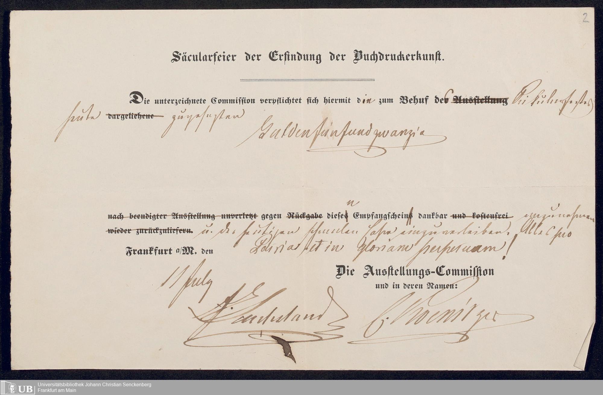 Ms. Ff. G. Kloß VI.6 - Drucksachen und weitere Unterlagen zur Säcularfeier der Erfindung der Buchdruckerkunst 1840