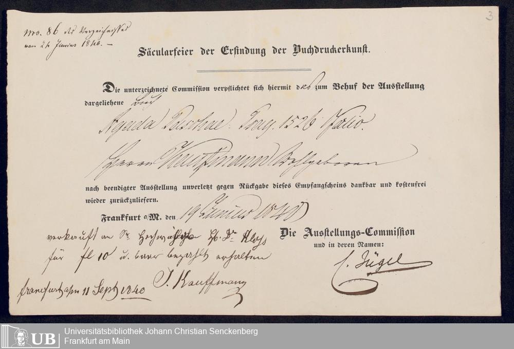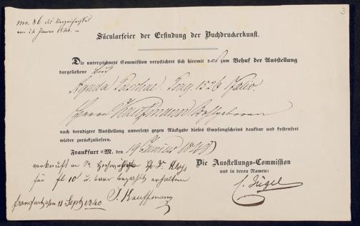 Ms. Ff. G. Kloß VI.6 - Drucksachen und weitere Unterlagen zur Säcularfeier der Erfindung der Buchdruckerkunst 1840