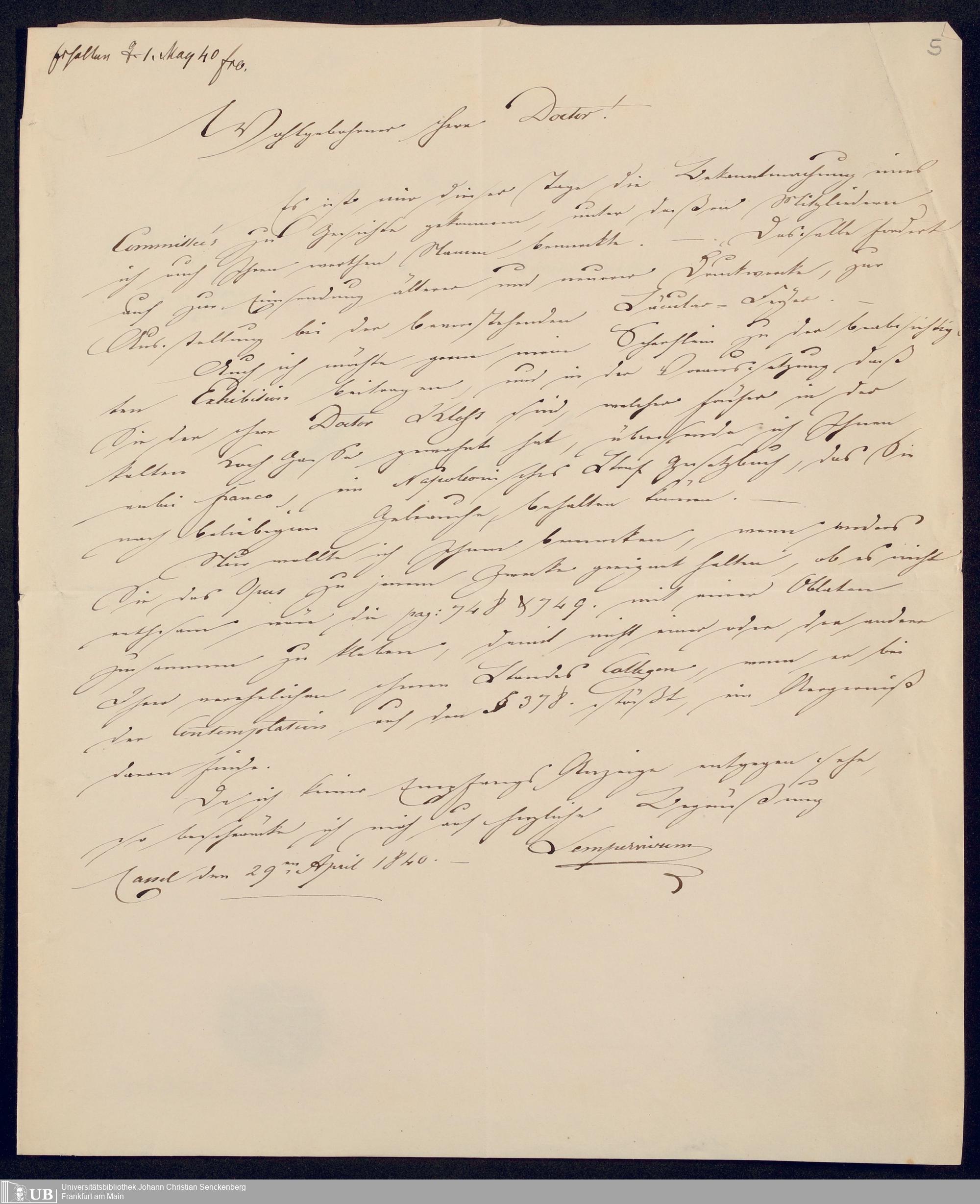 Ms. Ff. G. Kloß VI.6 - Drucksachen und weitere Unterlagen zur Säcularfeier der Erfindung der Buchdruckerkunst 1840