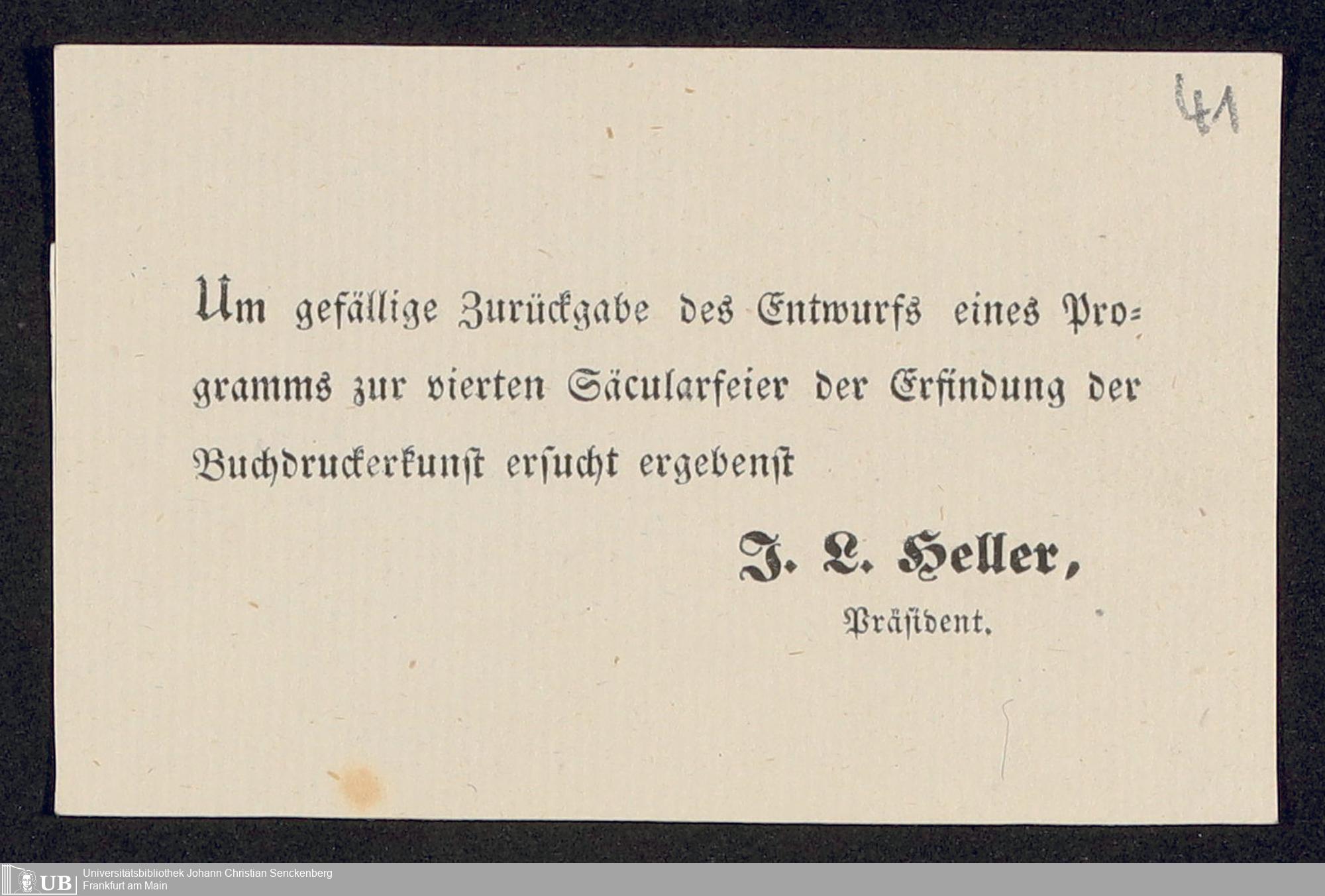 Ms. Ff. G. Kloß VI.6 - Drucksachen und weitere Unterlagen zur Säcularfeier der Erfindung der Buchdruckerkunst 1840
