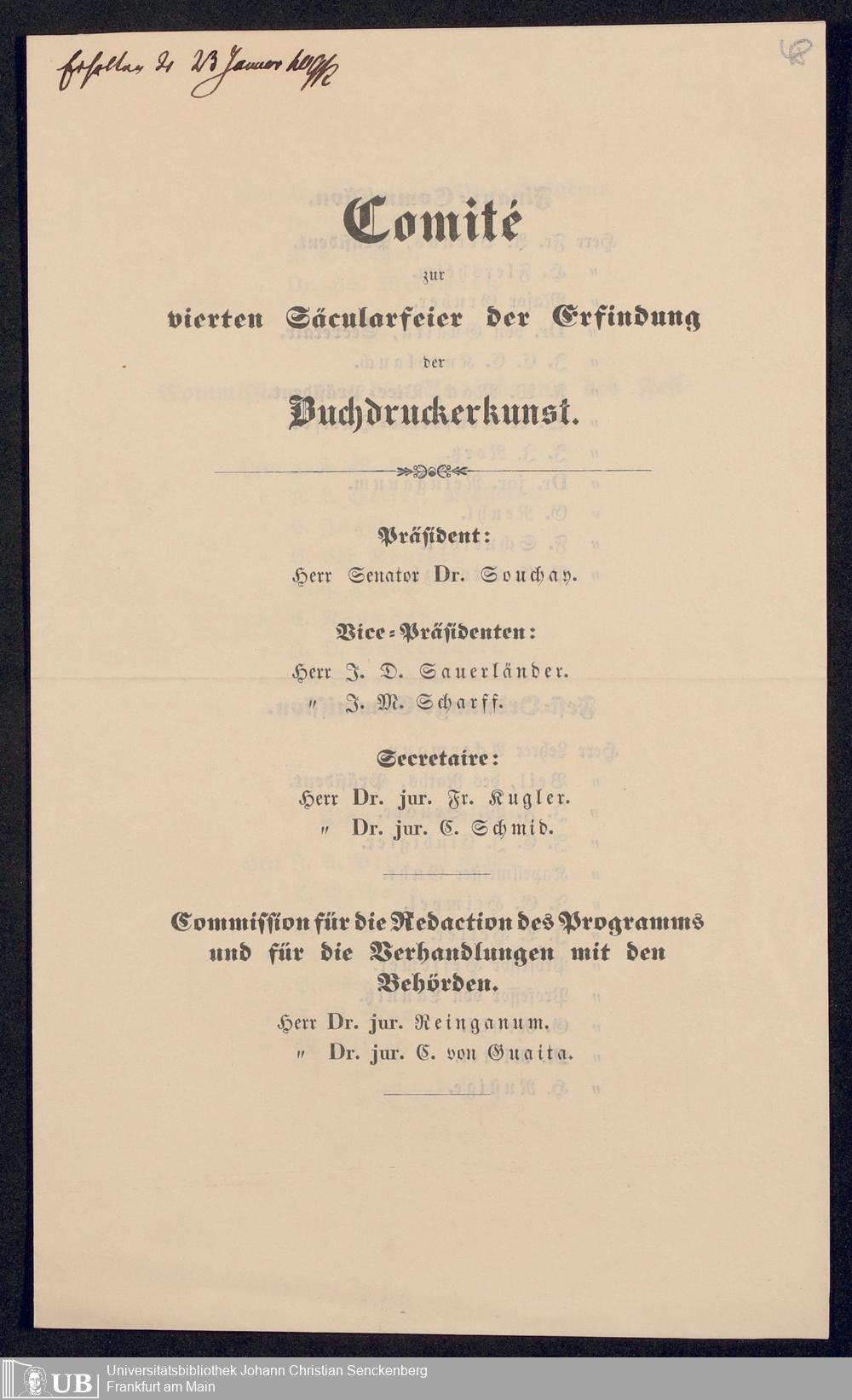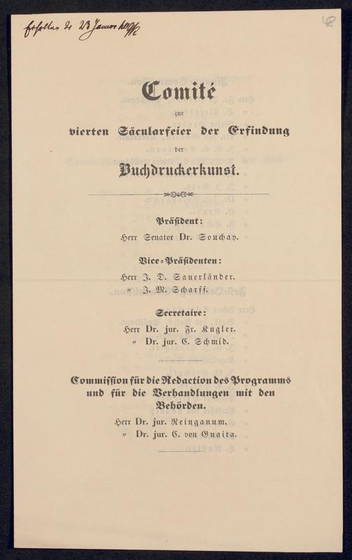 Ms. Ff. G. Kloß VI.6 - Drucksachen und weitere Unterlagen zur Säcularfeier der Erfindung der Buchdruckerkunst 1840