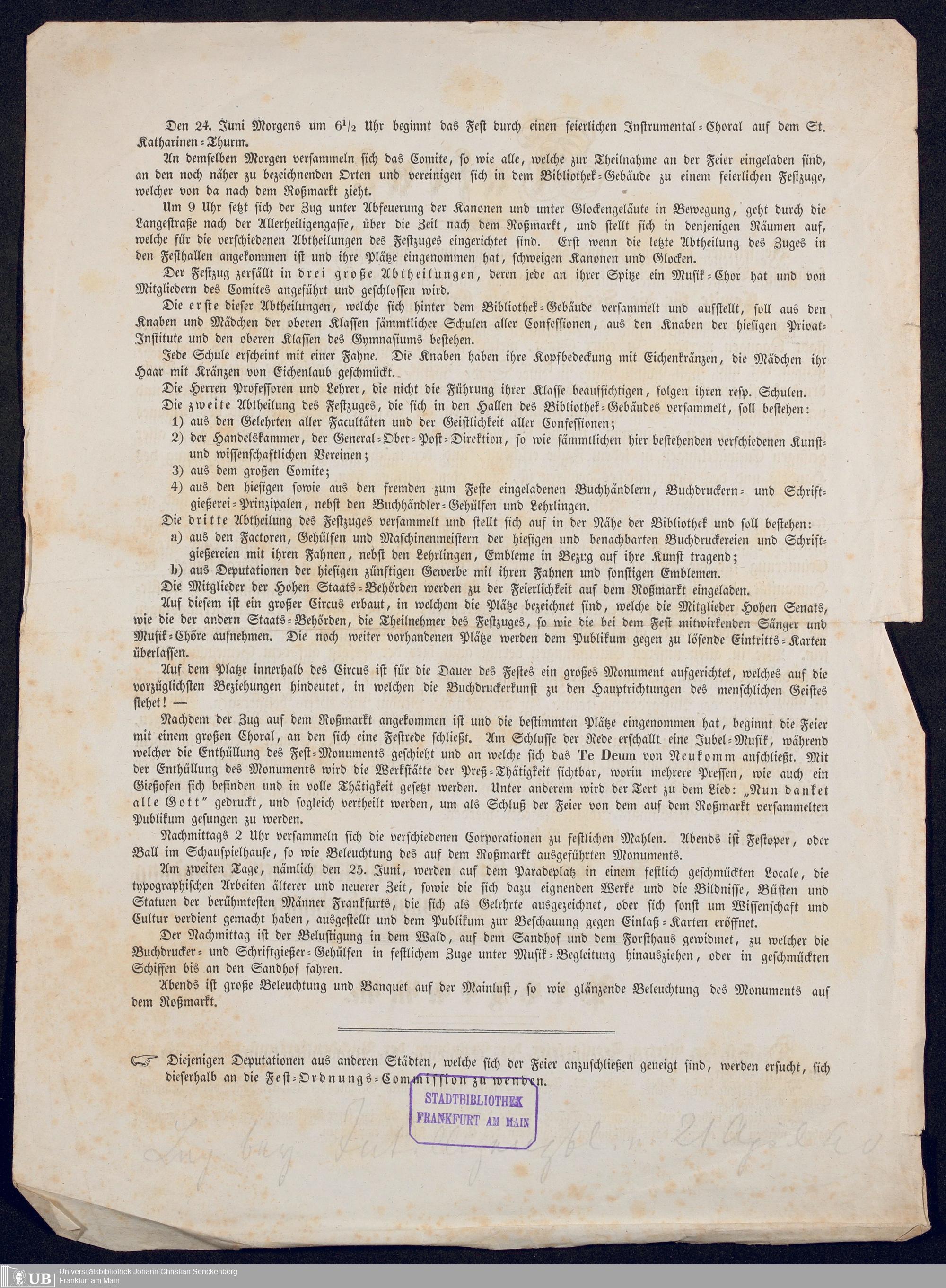Ms. Ff. G. Kloß VI.6 - Drucksachen und weitere Unterlagen zur Säcularfeier der Erfindung der Buchdruckerkunst 1840