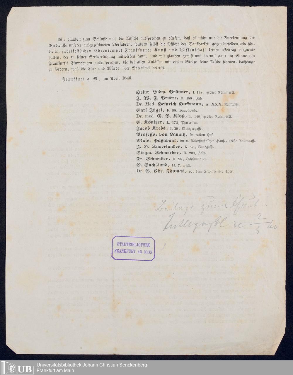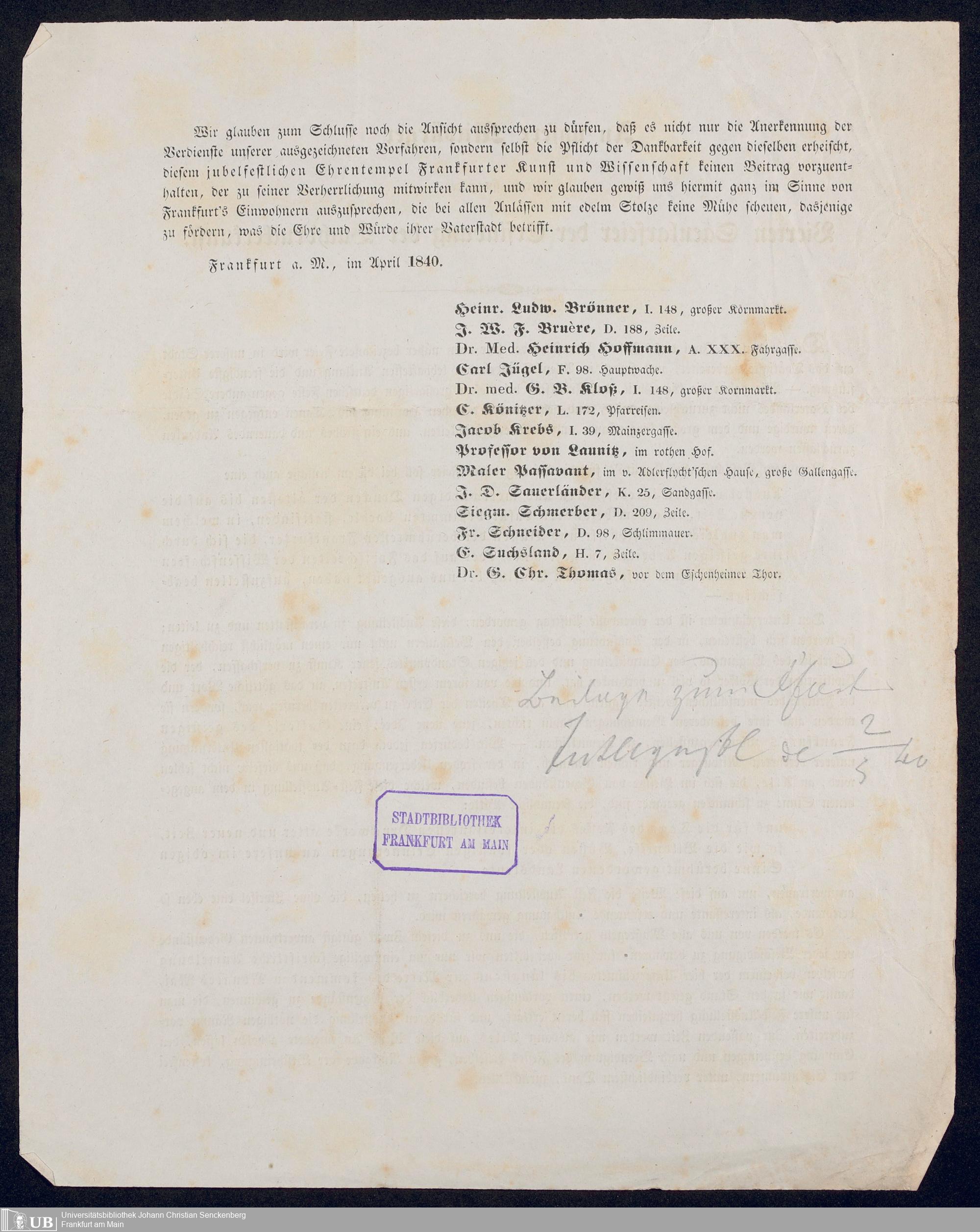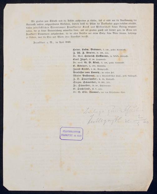 Ms. Ff. G. Kloß VI.6 - Drucksachen und weitere Unterlagen zur Säcularfeier der Erfindung der Buchdruckerkunst 1840