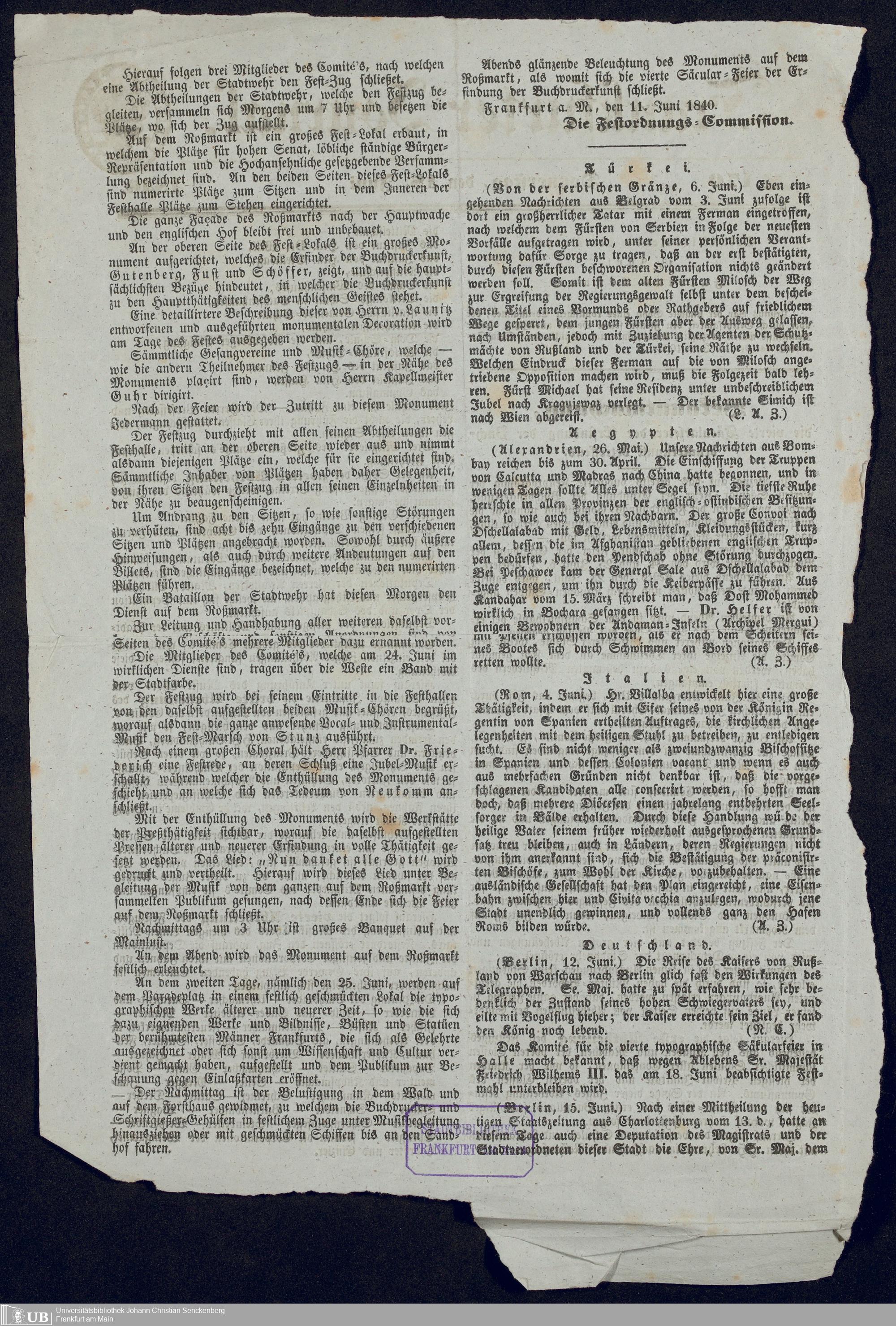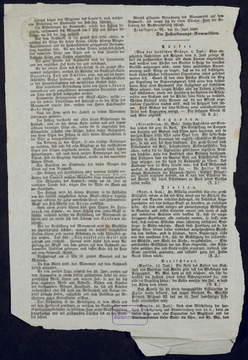 Ms. Ff. G. Kloß VI.6 - Drucksachen und weitere Unterlagen zur Säcularfeier der Erfindung der Buchdruckerkunst 1840