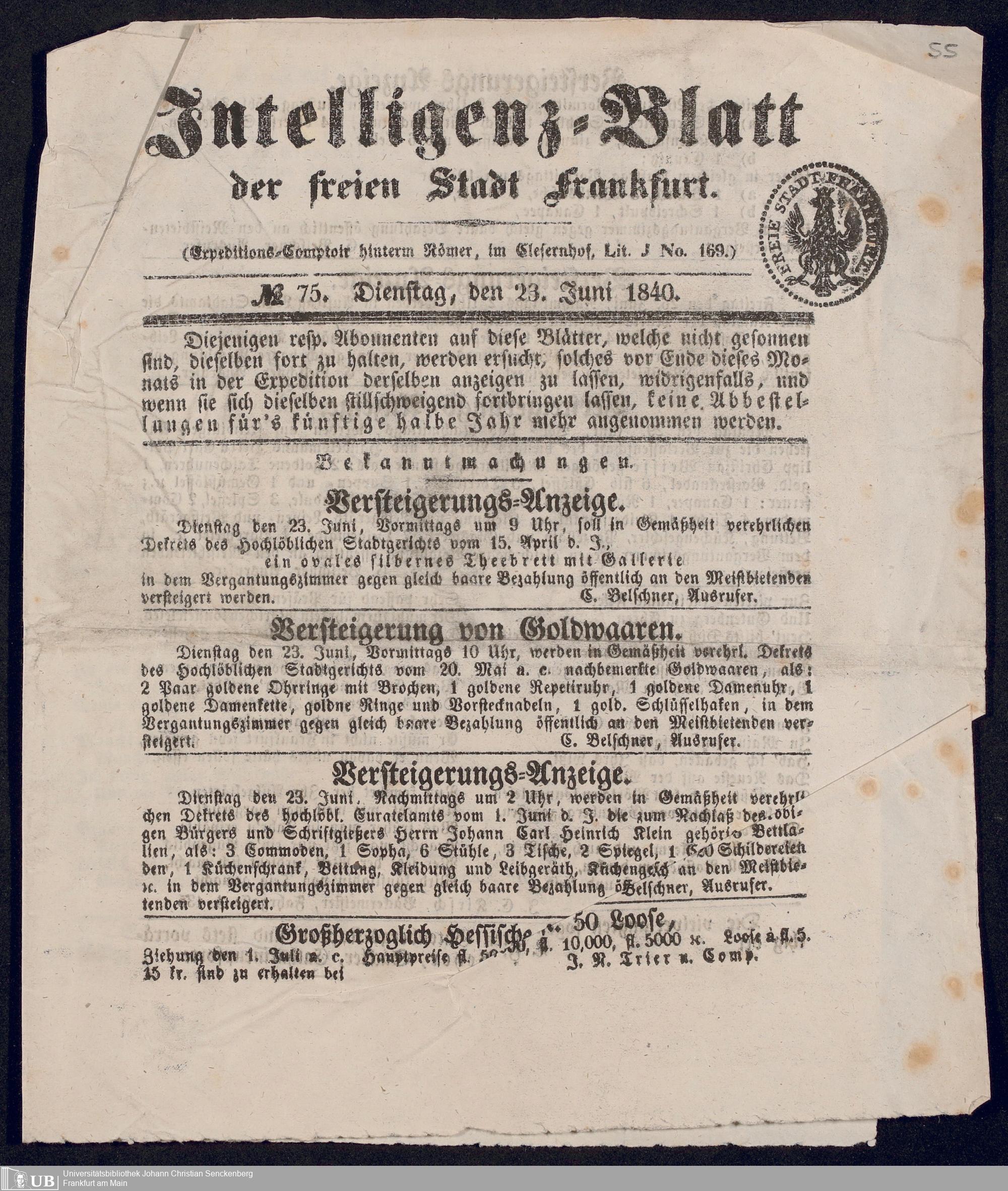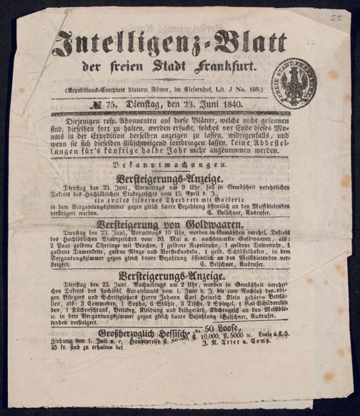 Ms. Ff. G. Kloß VI.6 - Drucksachen und weitere Unterlagen zur Säcularfeier der Erfindung der Buchdruckerkunst 1840