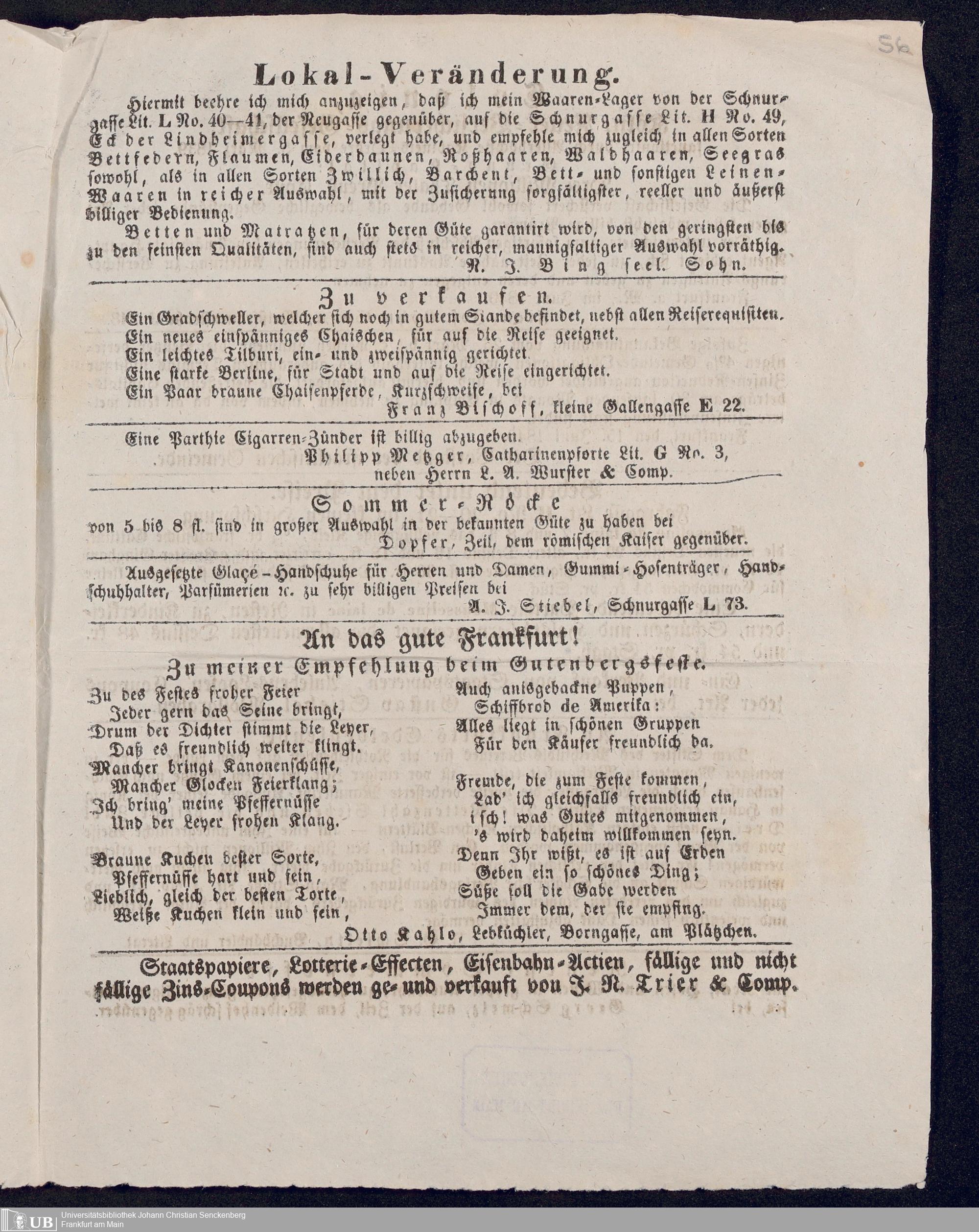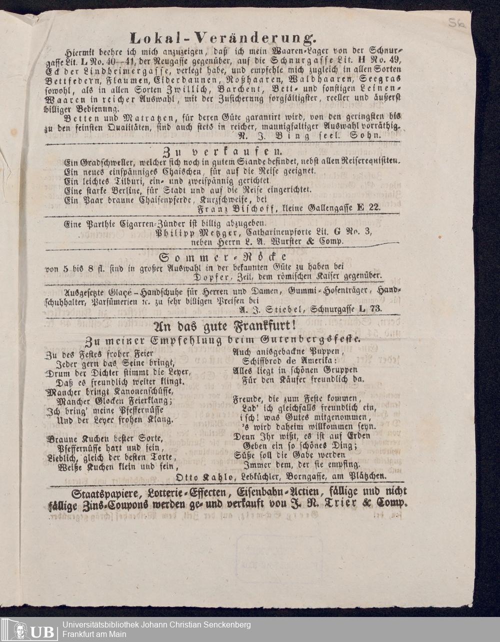Ms. Ff. G. Kloß VI.6 - Drucksachen und weitere Unterlagen zur Säcularfeier der Erfindung der Buchdruckerkunst 1840