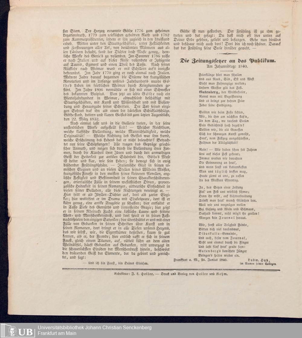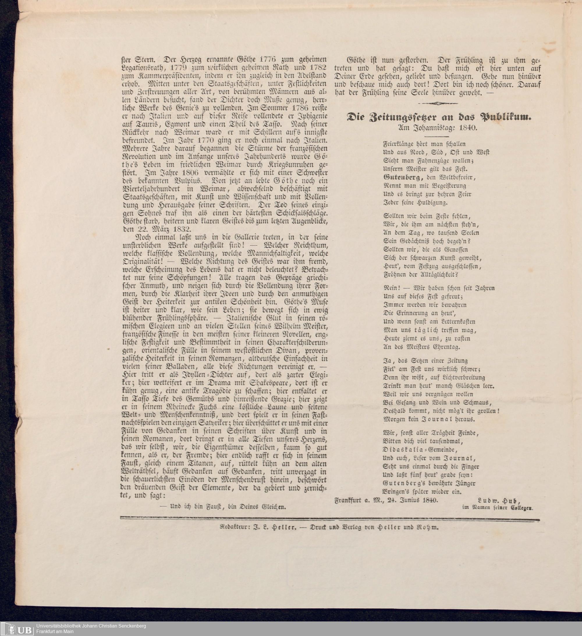 Ms. Ff. G. Kloß VI.6 - Drucksachen und weitere Unterlagen zur Säcularfeier der Erfindung der Buchdruckerkunst 1840