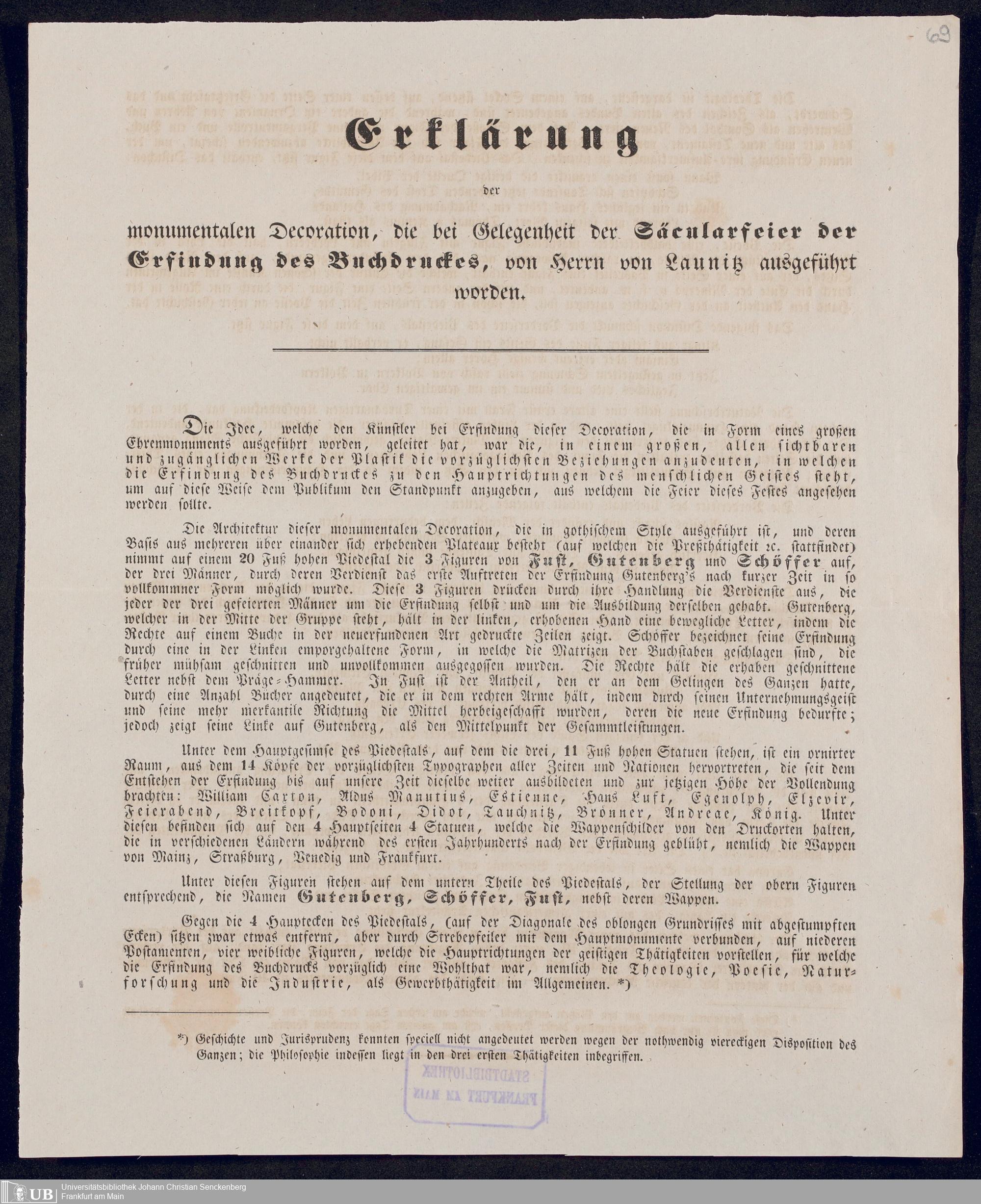 Ms. Ff. G. Kloß VI.6 - Drucksachen und weitere Unterlagen zur Säcularfeier der Erfindung der Buchdruckerkunst 1840