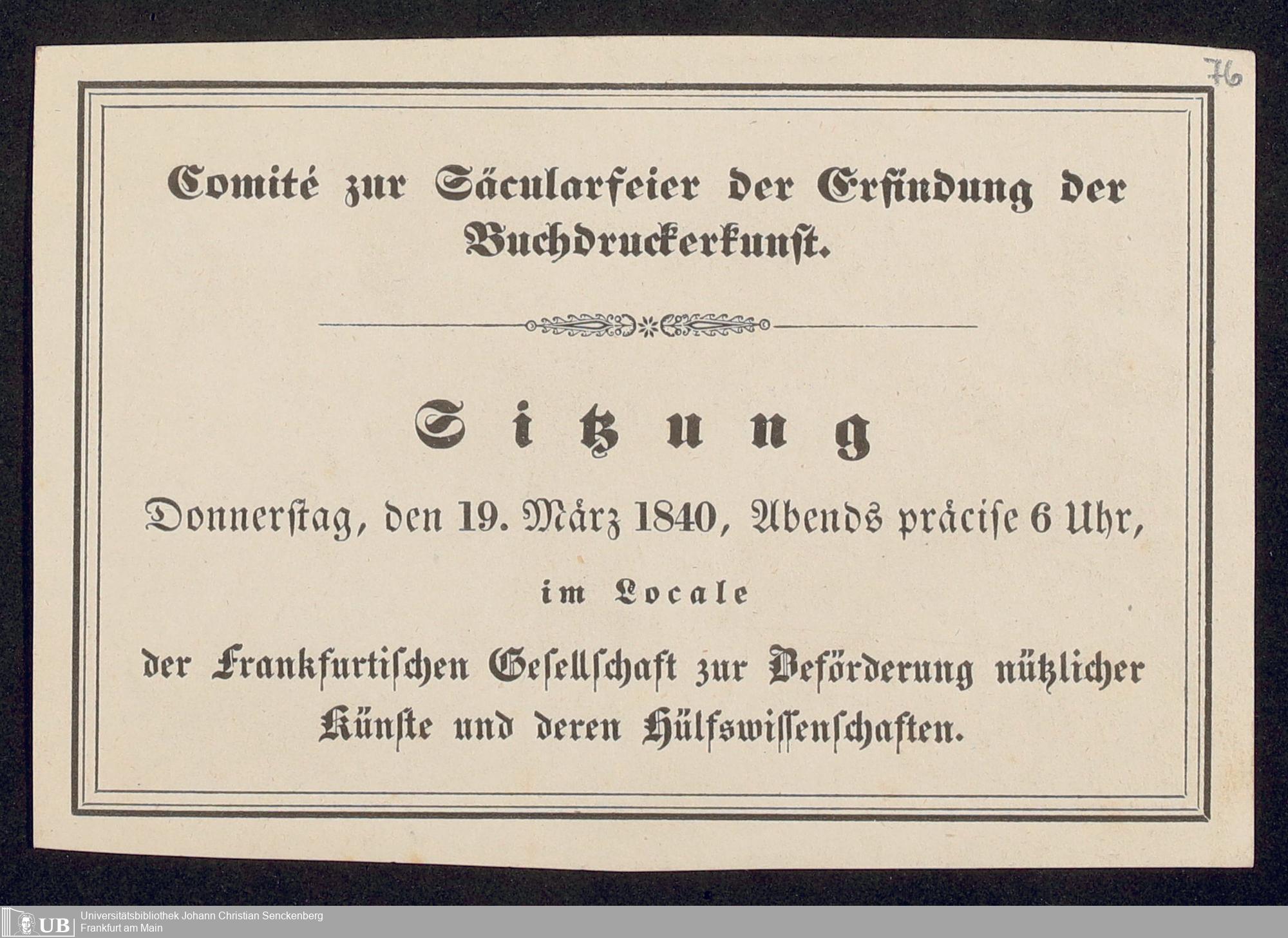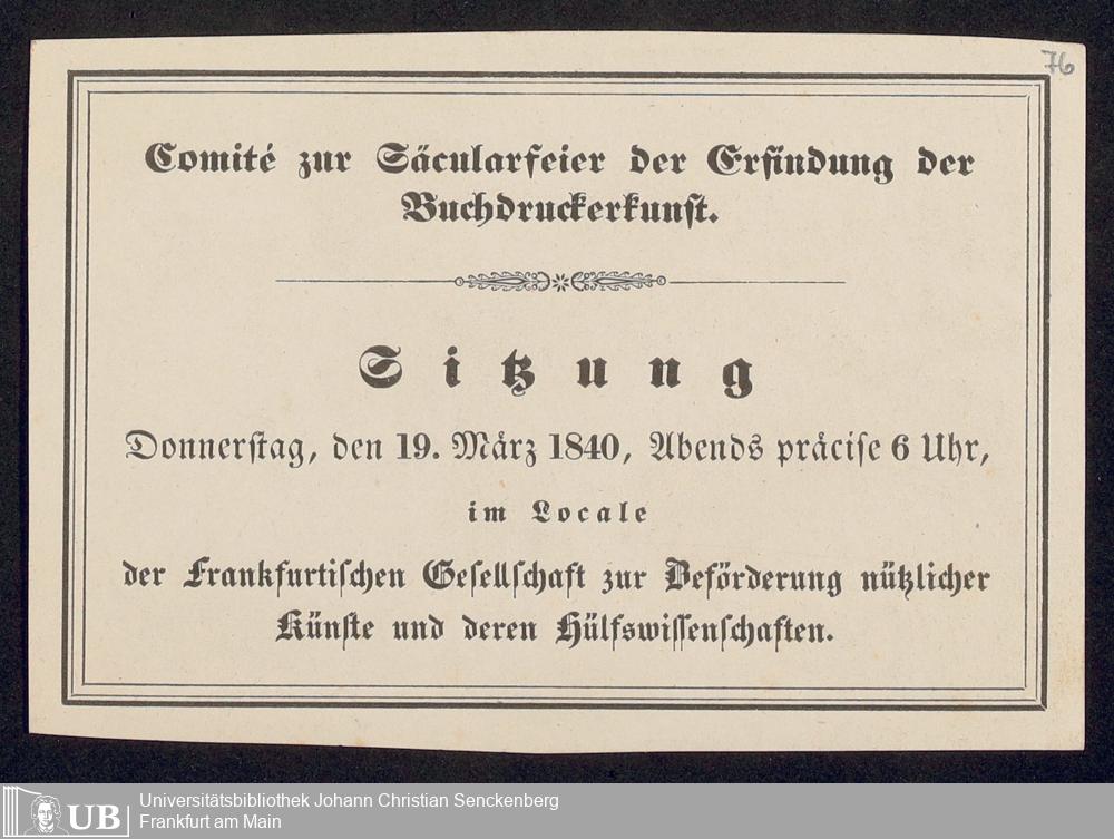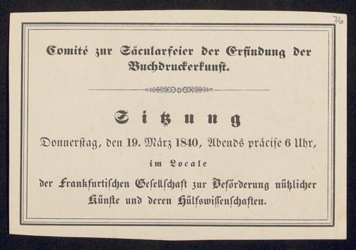 Ms. Ff. G. Kloß VI.6 - Drucksachen und weitere Unterlagen zur Säcularfeier der Erfindung der Buchdruckerkunst 1840