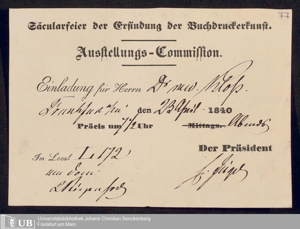 Ms. Ff. G. Kloß VI.6 - Drucksachen und weitere Unterlagen zur Säcularfeier der Erfindung der Buchdruckerkunst 1840