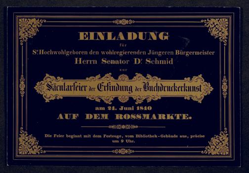 Ms. Ff. G. Kloß VI.6 - Drucksachen und weitere Unterlagen zur Säcularfeier der Erfindung der Buchdruckerkunst 1840