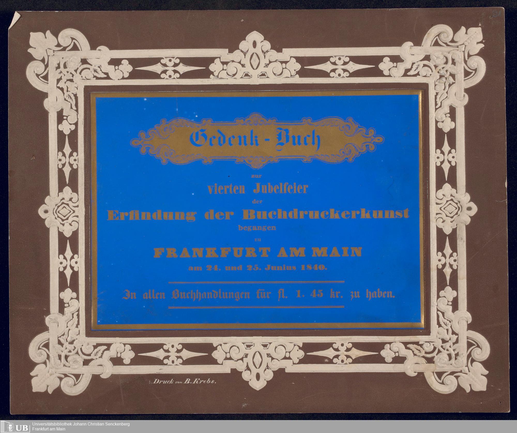 Ms. Ff. G. Kloß VI.6 - Drucksachen und weitere Unterlagen zur Säcularfeier der Erfindung der Buchdruckerkunst 1840
