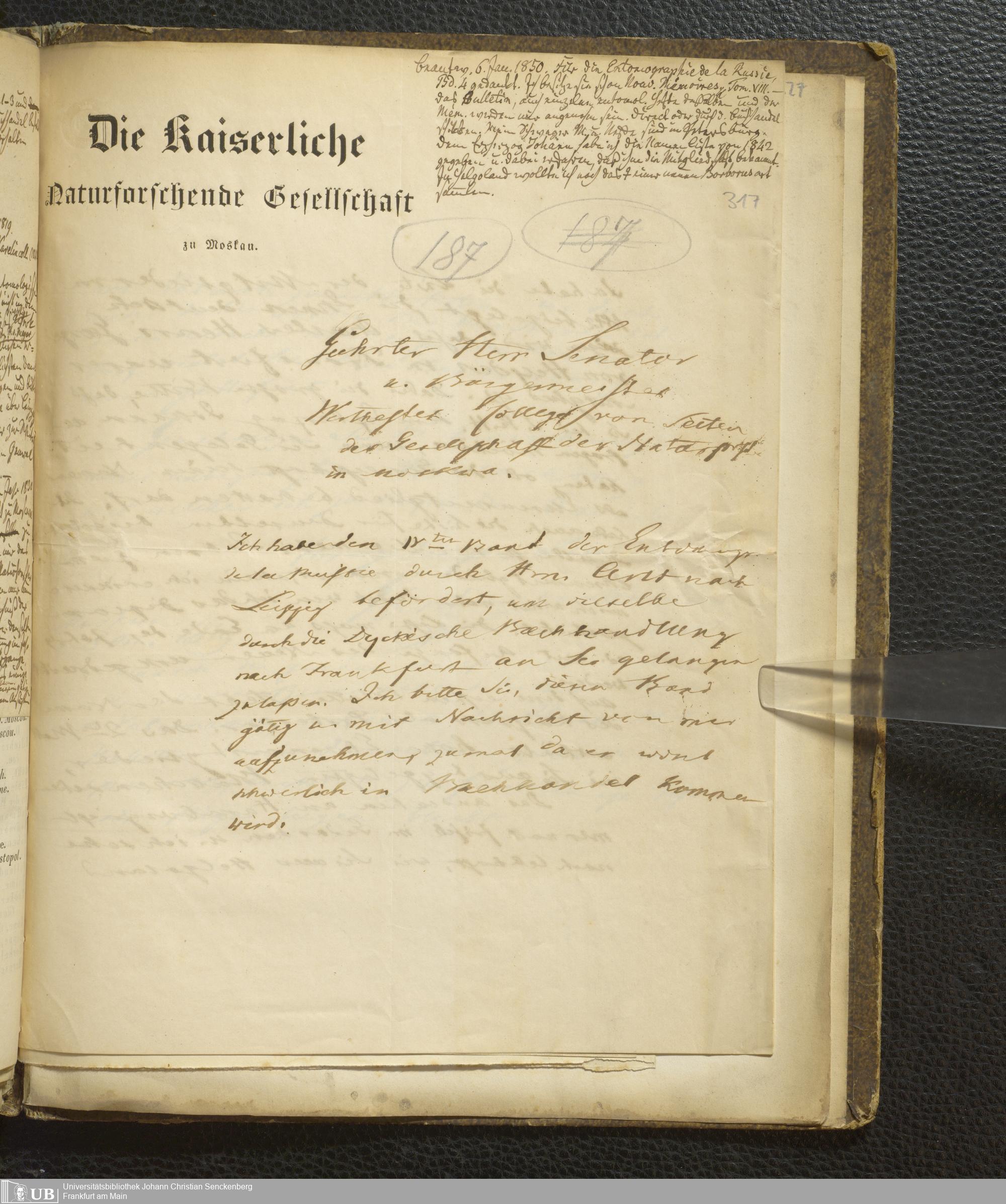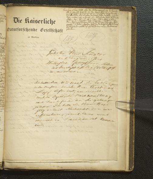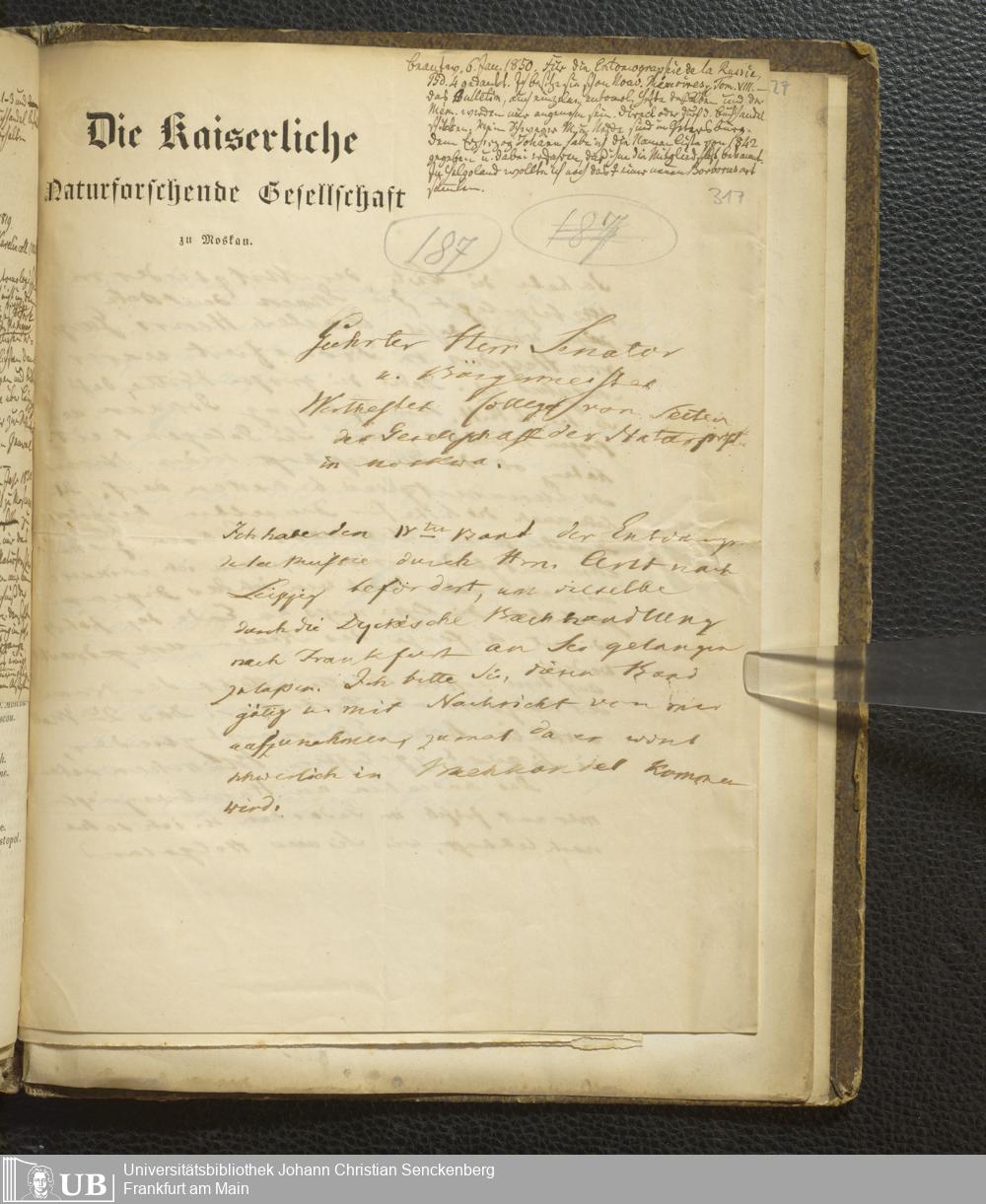 4˚ Hs 12 Bd. 2 - Entomologische Correspondenz von Karl Heinrich Georg von Heyden. C/F
