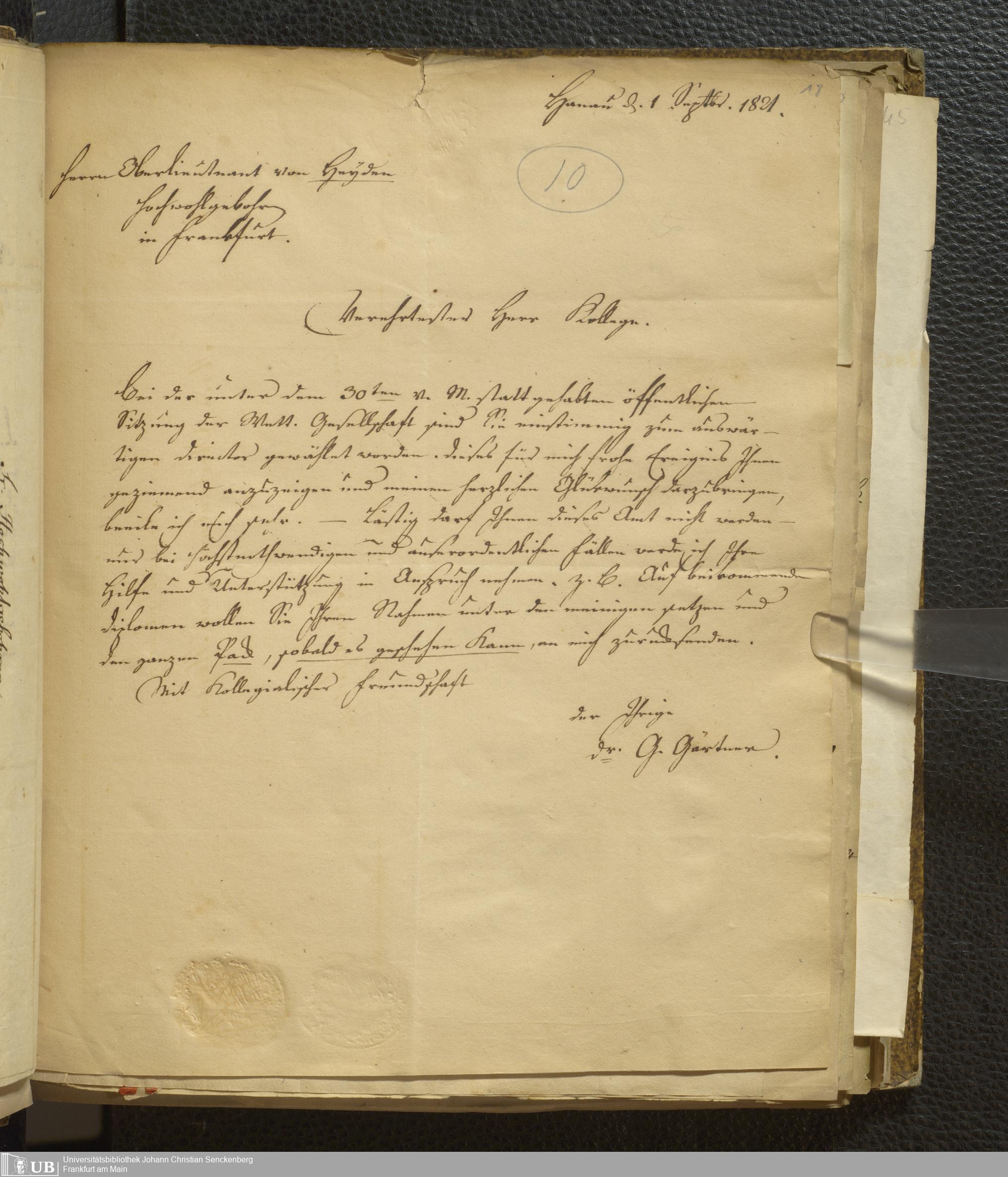 4˚ Hs 12 Bd. 3 - Entomologische Correspondenz von Karl Heinrich Georg von Heyden. G/H