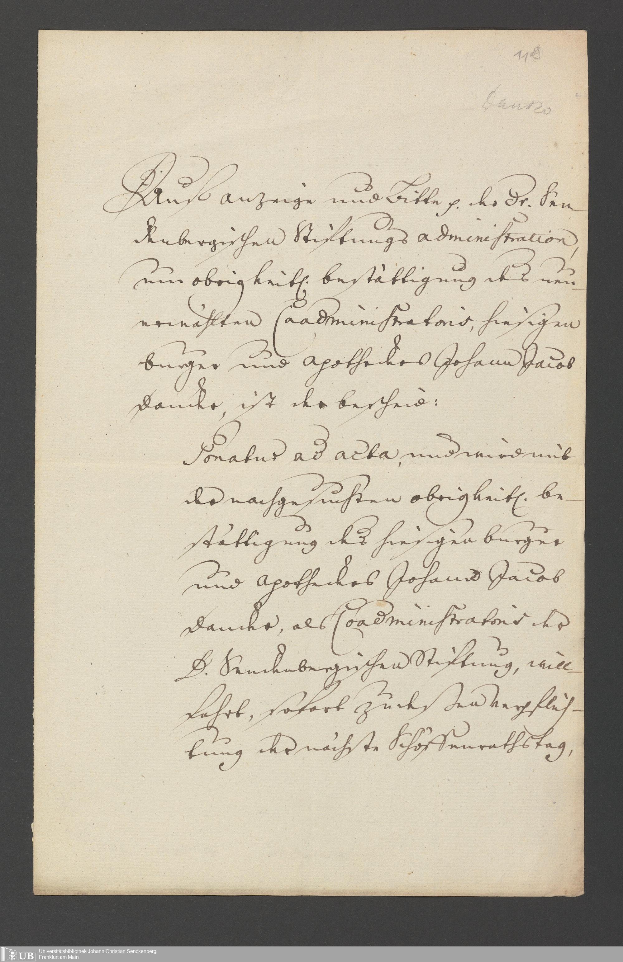 B 5 Dr. Senckenbergische Stiftung, 2 - Wahl, Bestätigung durch den Schöffenrat und Abdankung von Mitgliedern der Administration