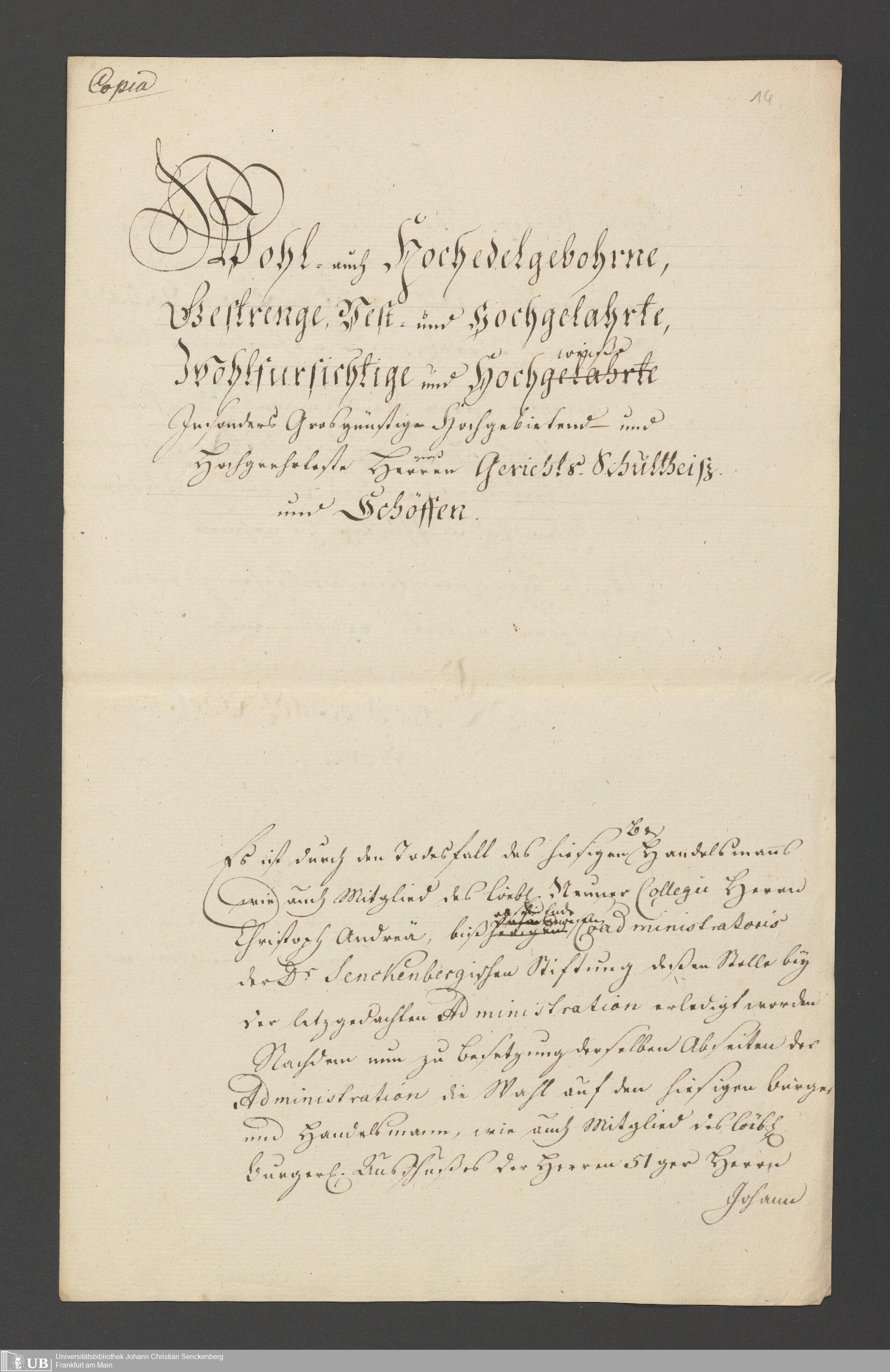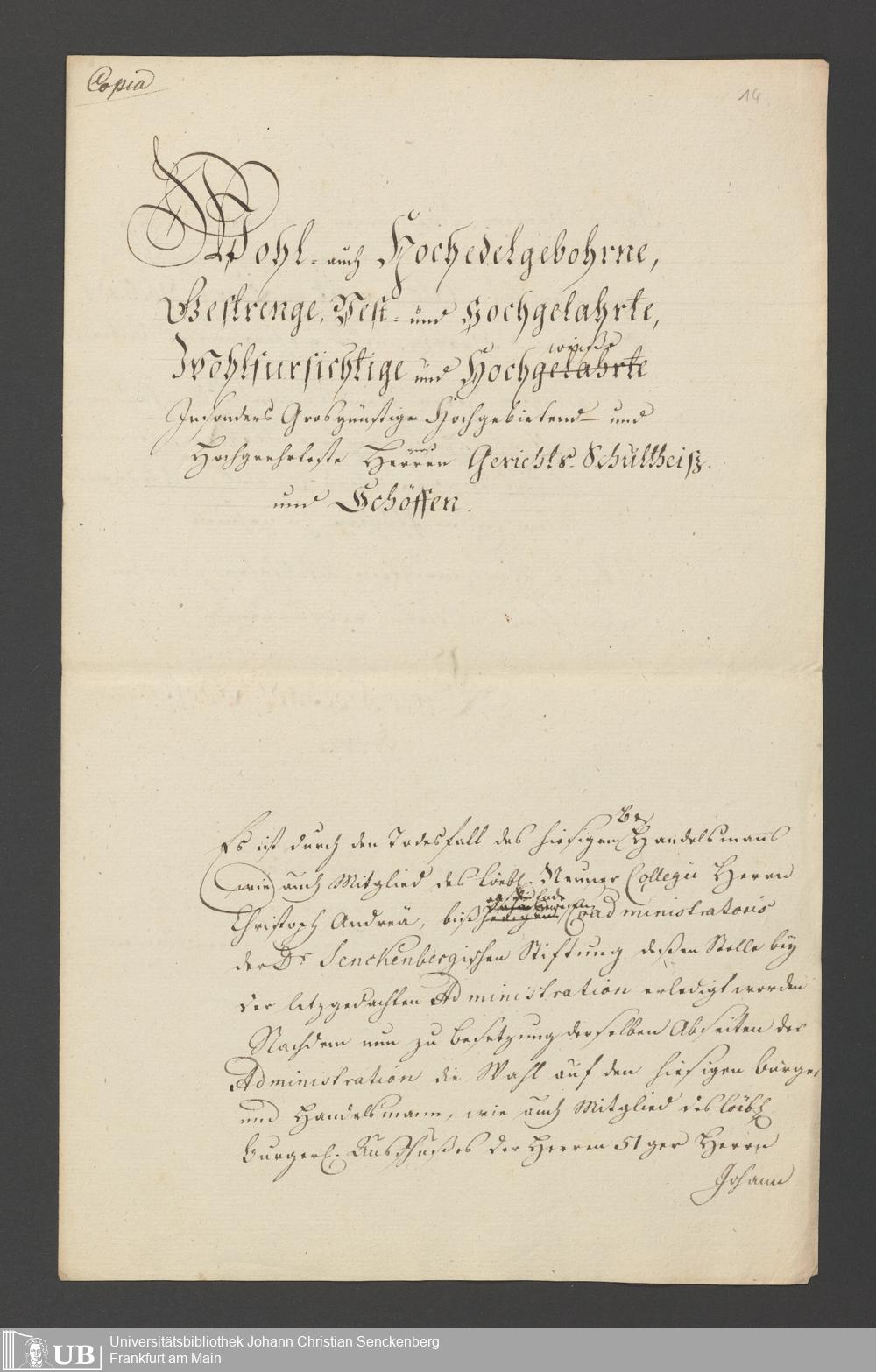 B 5 Dr. Senckenbergische Stiftung, 2 - Wahl, Bestätigung durch den Schöffenrat und Abdankung von Mitgliedern der Administration
