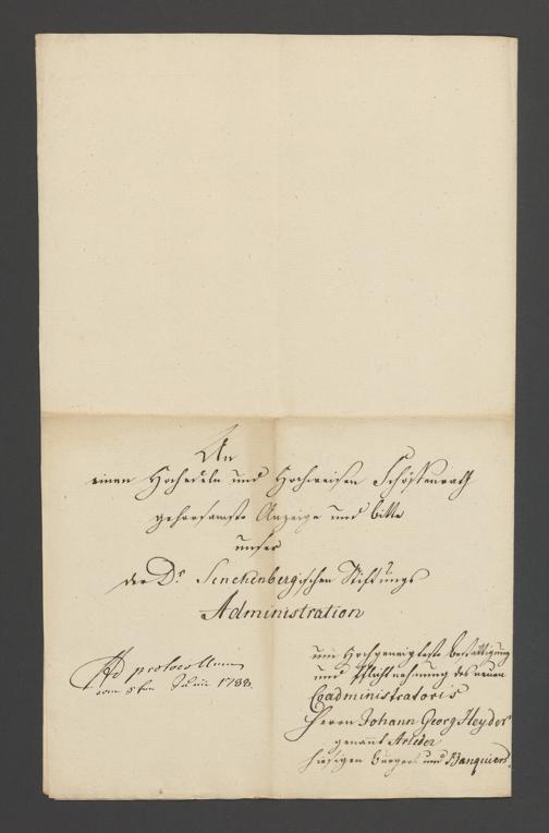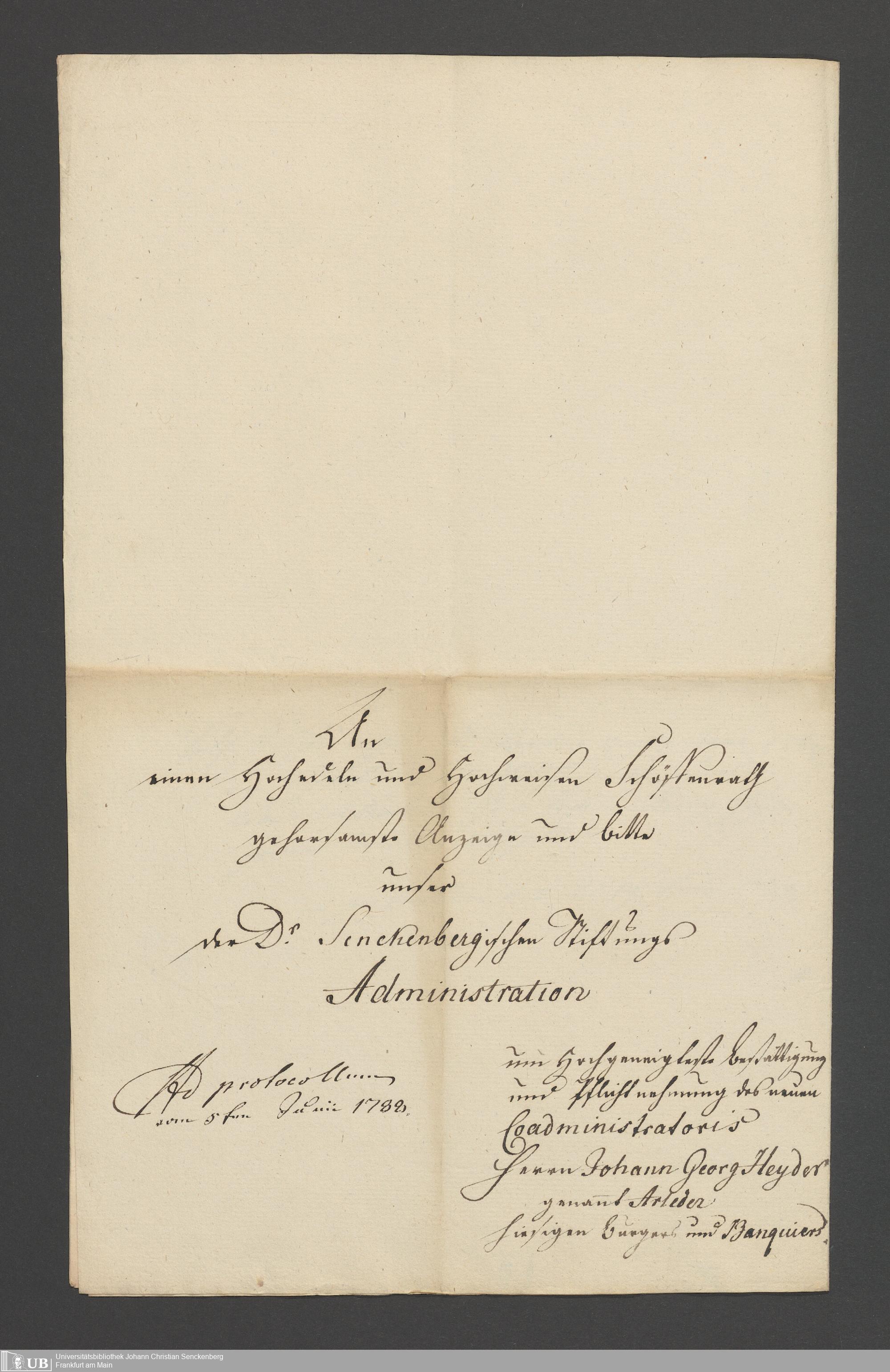 B 5 Dr. Senckenbergische Stiftung, 2 - Wahl, Bestätigung durch den Schöffenrat und Abdankung von Mitgliedern der Administration