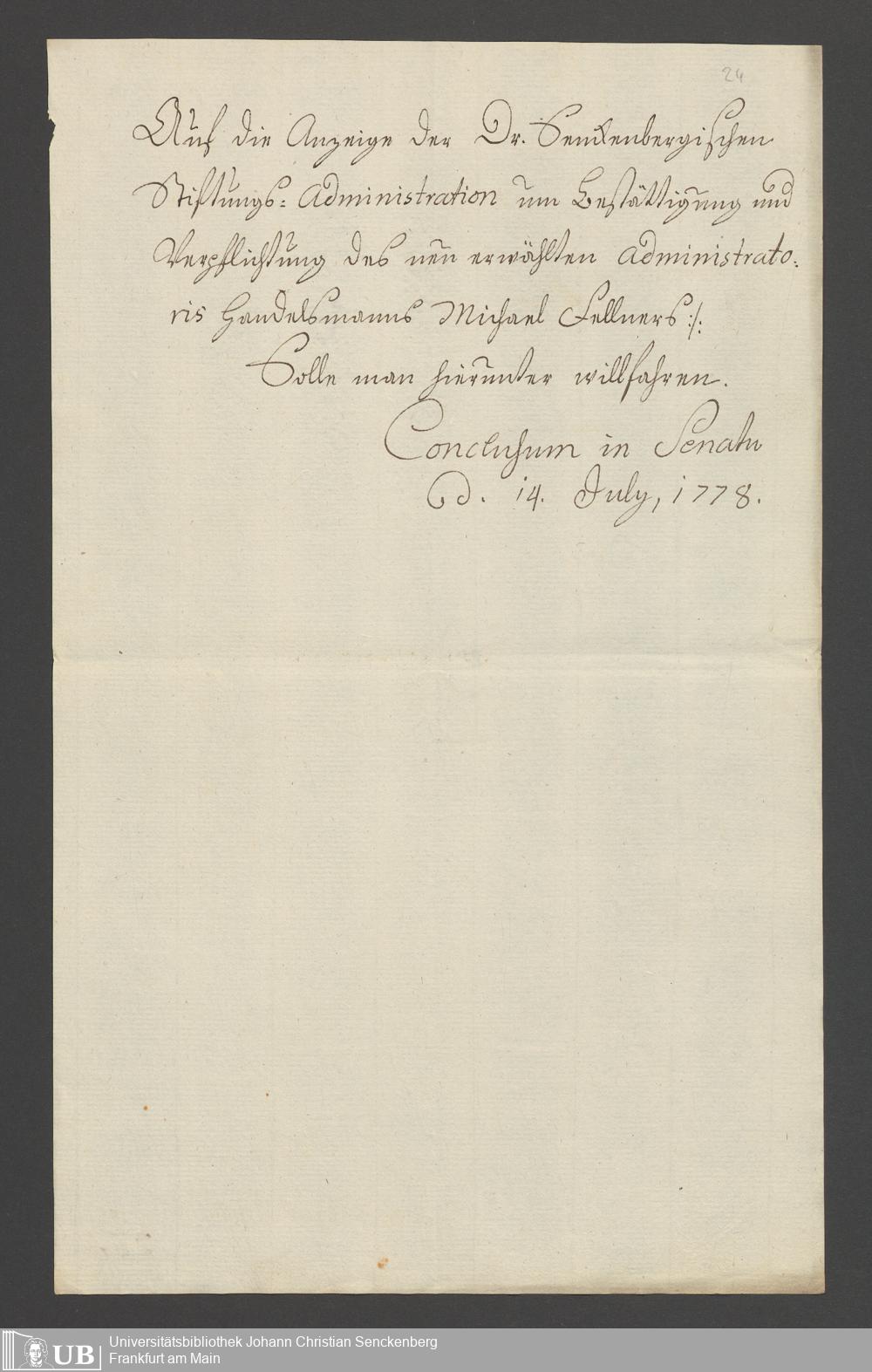 B 5 Dr. Senckenbergische Stiftung, 2 - Wahl, Bestätigung durch den Schöffenrat und Abdankung von Mitgliedern der Administration