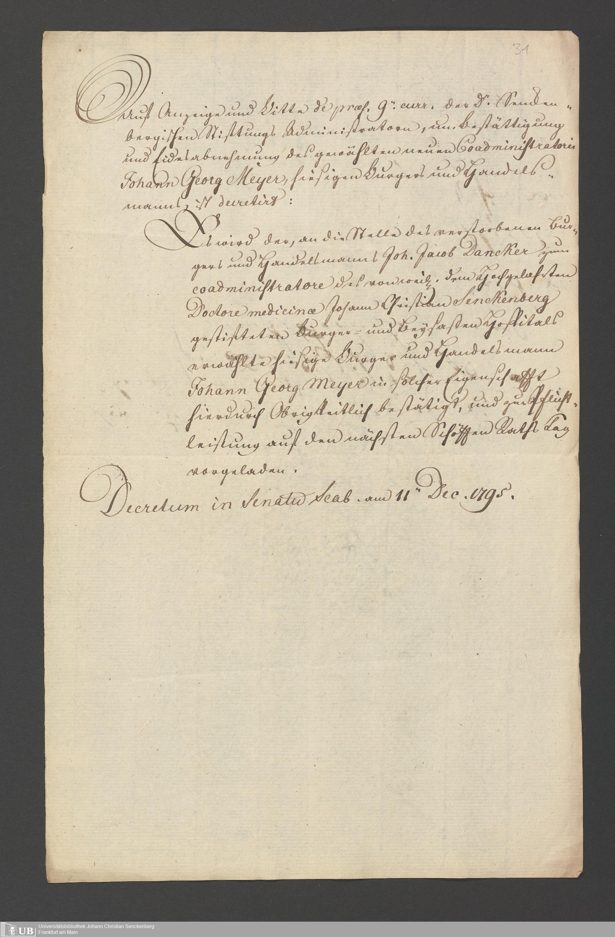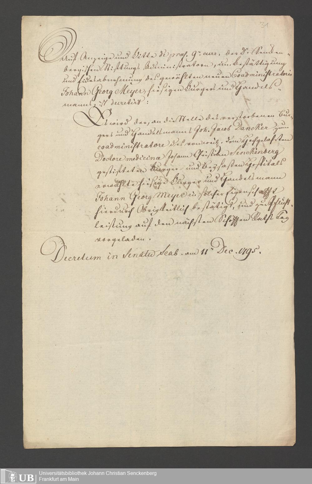 B 5 Dr. Senckenbergische Stiftung, 2 - Wahl, Bestätigung durch den Schöffenrat und Abdankung von Mitgliedern der Administration