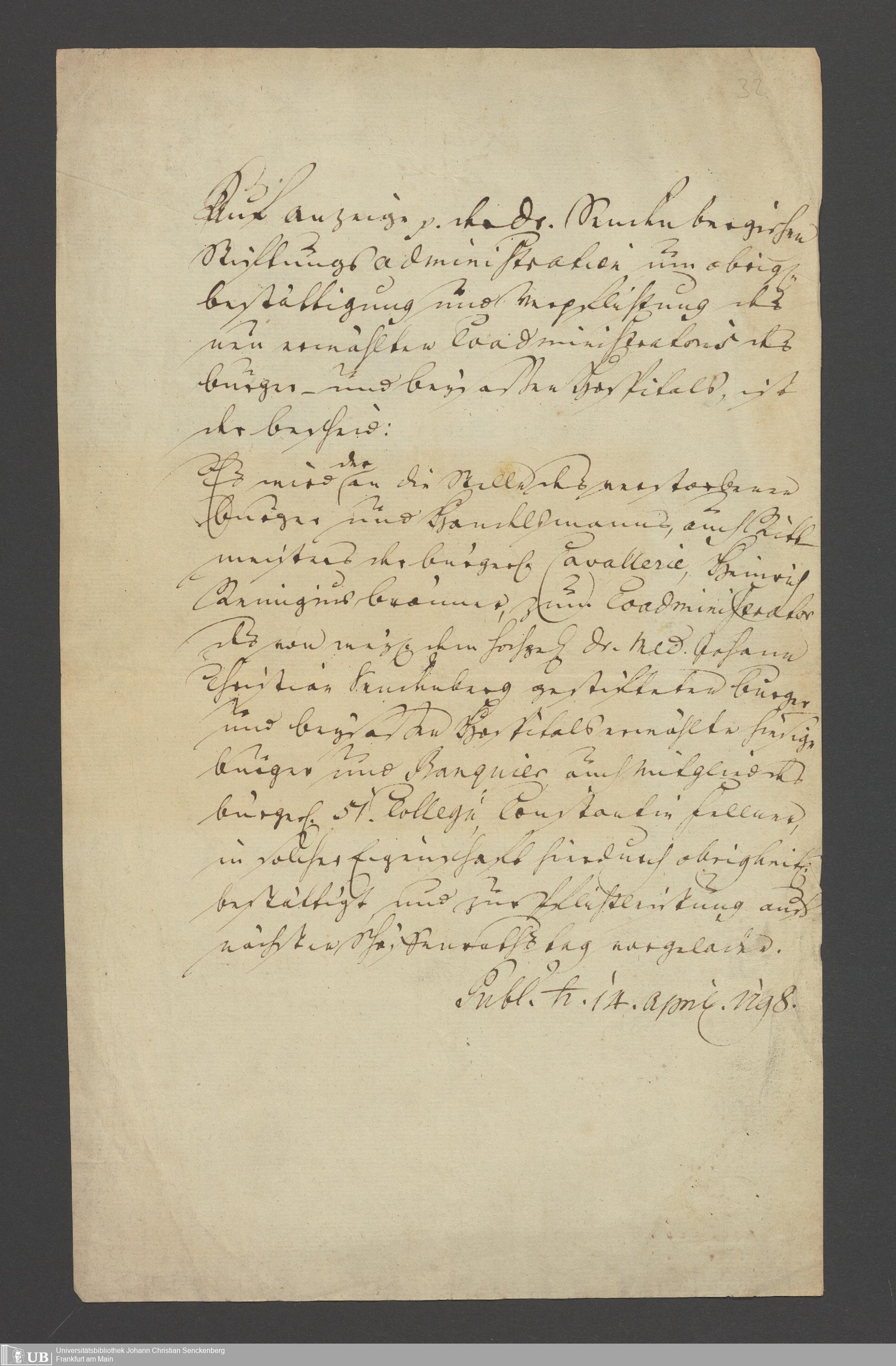 B 5 Dr. Senckenbergische Stiftung, 2 - Wahl, Bestätigung durch den Schöffenrat und Abdankung von Mitgliedern der Administration