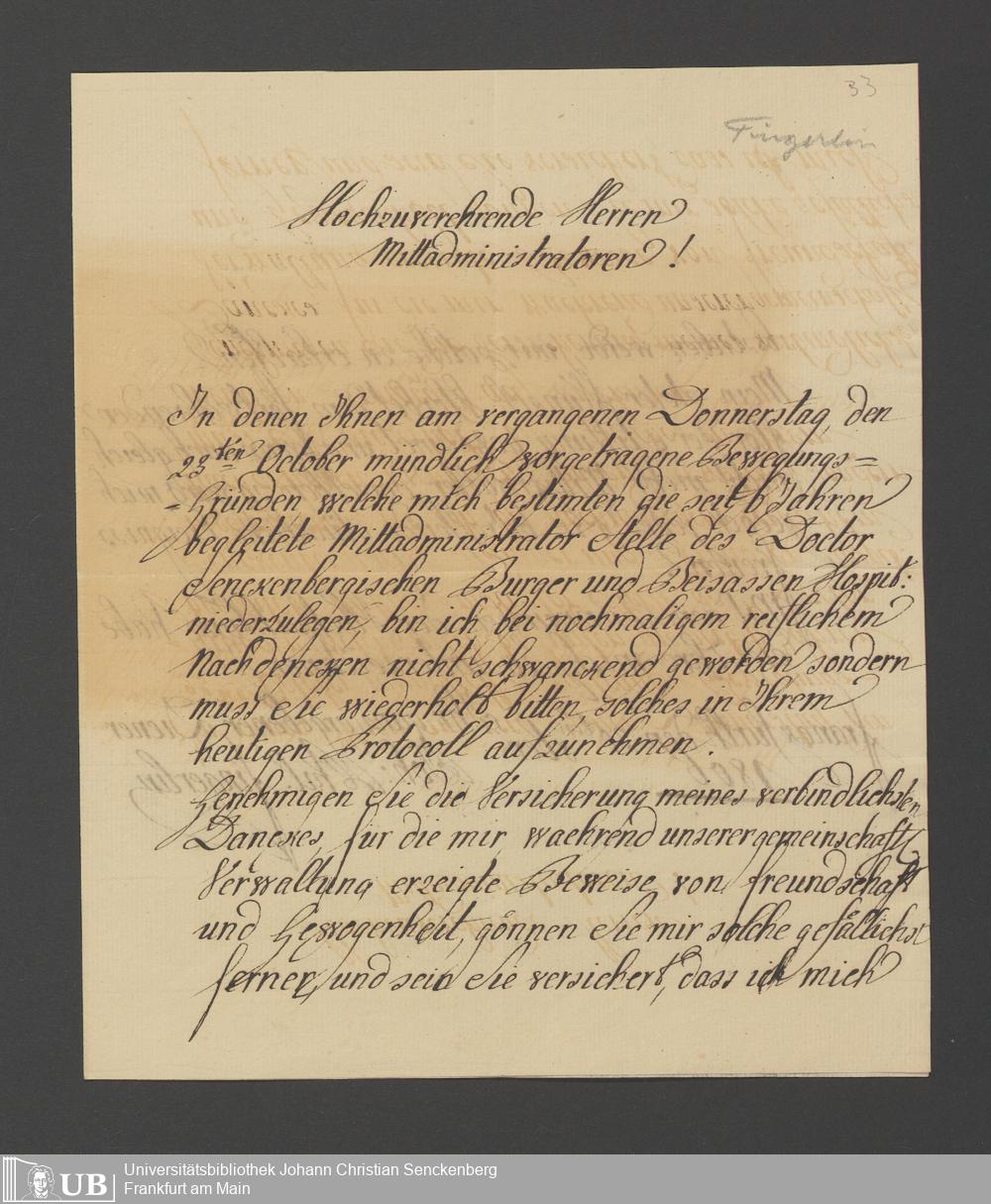 B 5 Dr. Senckenbergische Stiftung, 2 - Wahl, Bestätigung durch den Schöffenrat und Abdankung von Mitgliedern der Administration