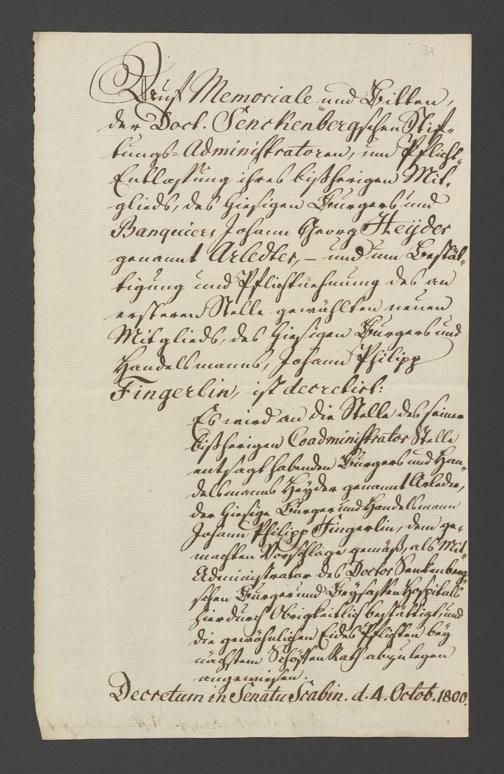 B 5 Dr. Senckenbergische Stiftung, 2 - Wahl, Bestätigung durch den Schöffenrat und Abdankung von Mitgliedern der Administration