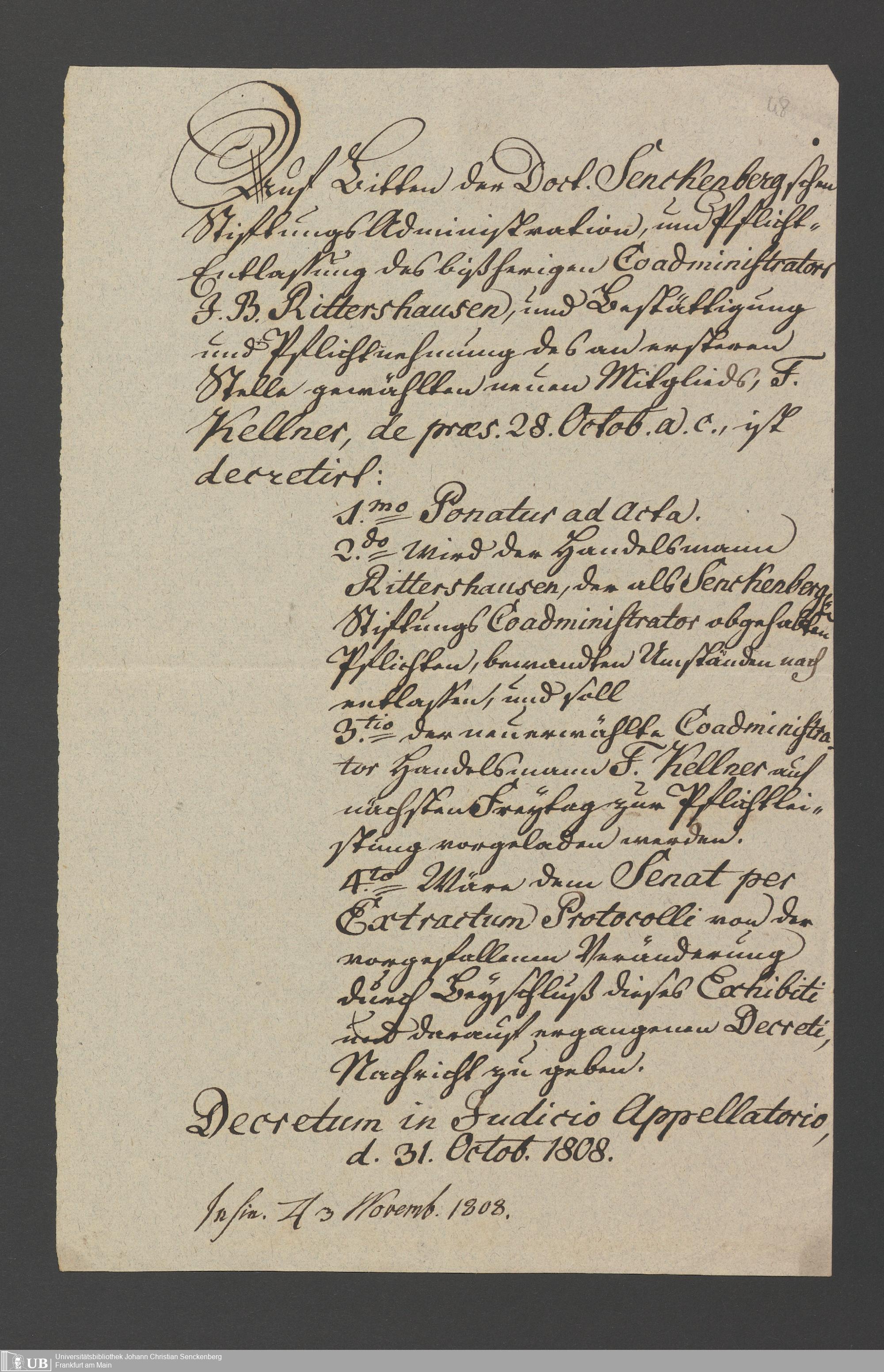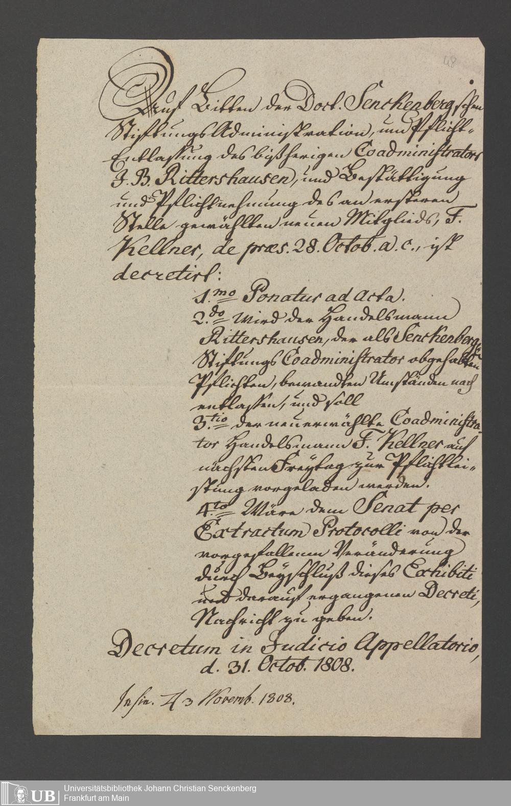 B 5 Dr. Senckenbergische Stiftung, 2 - Wahl, Bestätigung durch den Schöffenrat und Abdankung von Mitgliedern der Administration