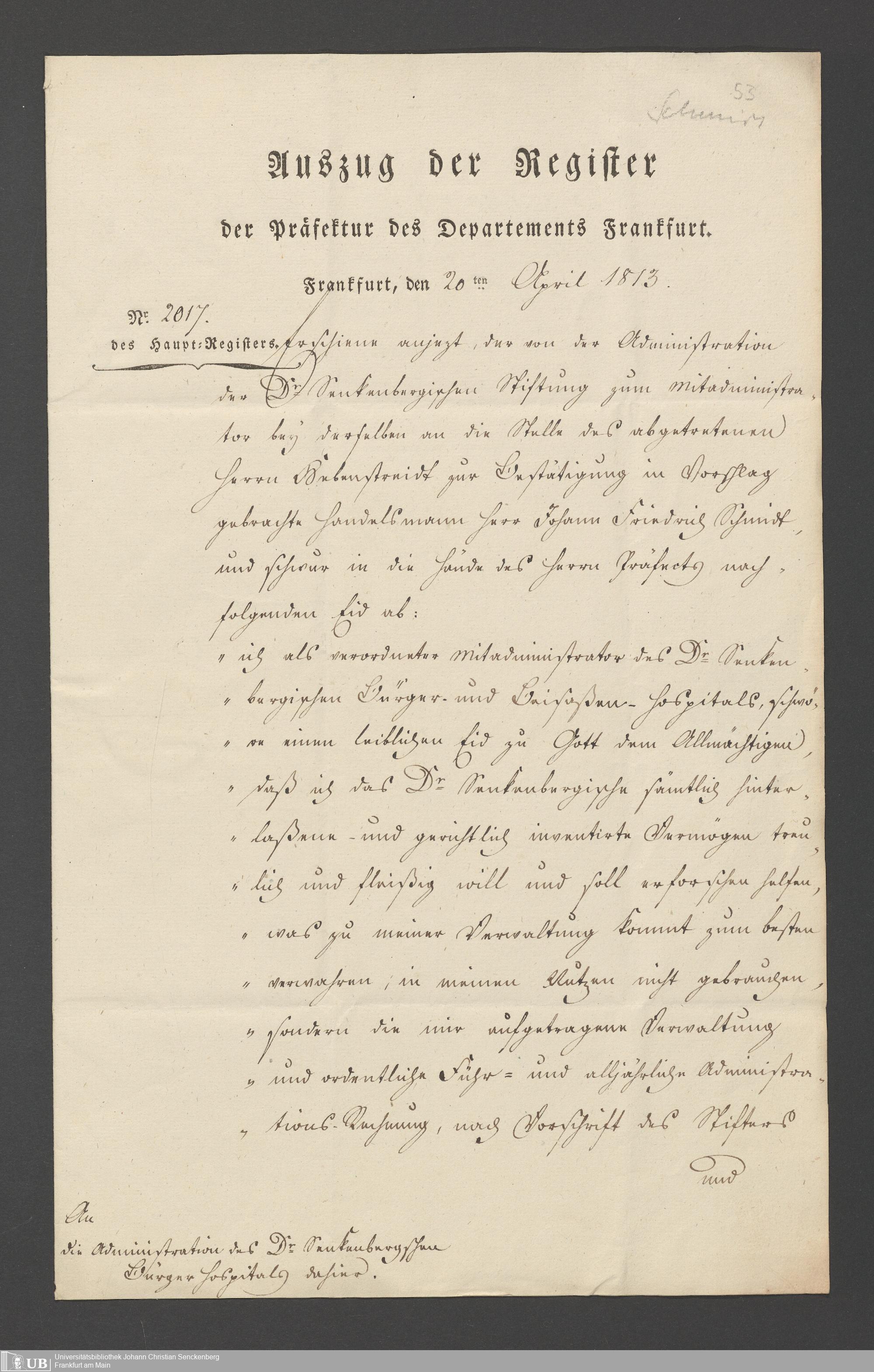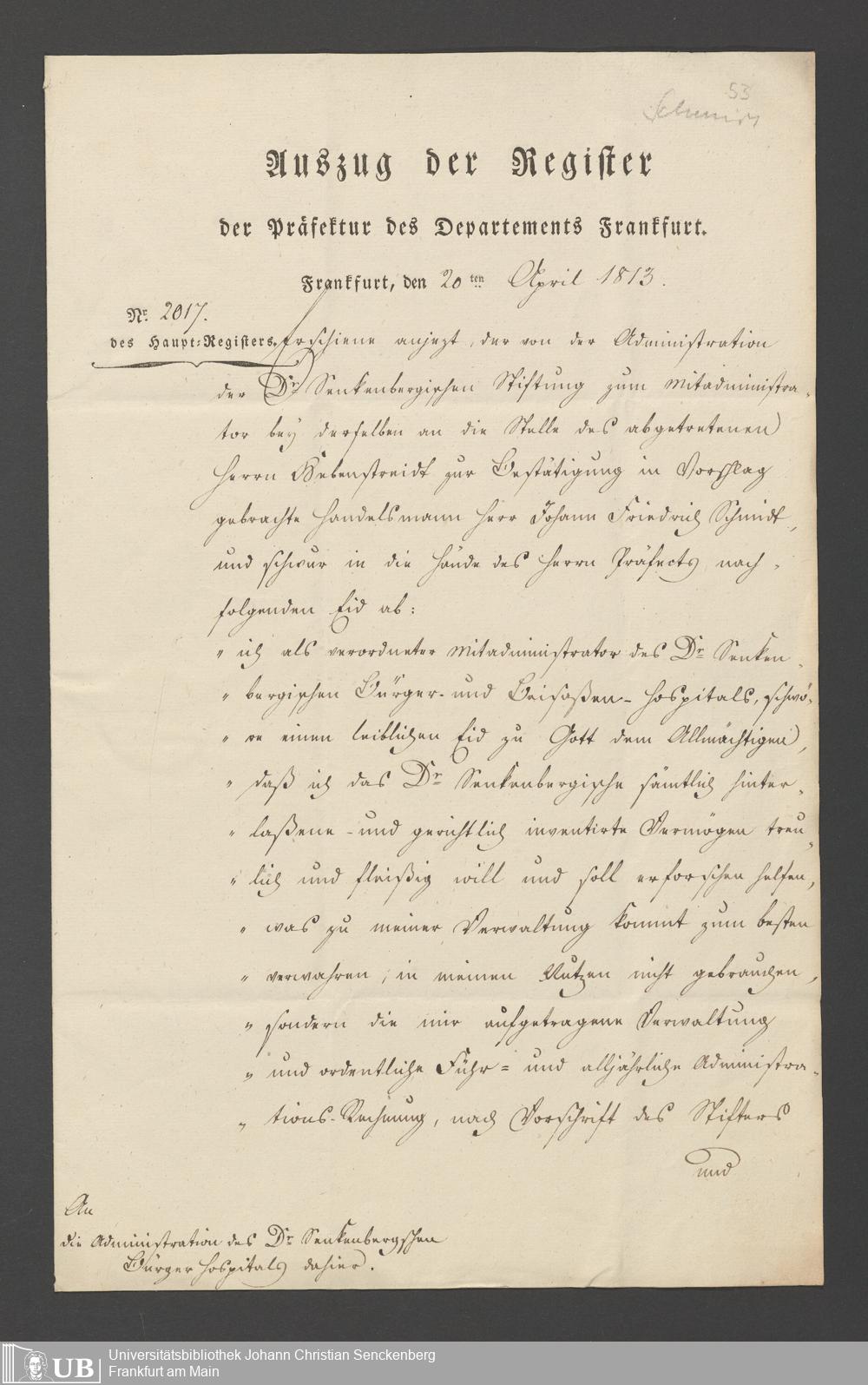 B 5 Dr. Senckenbergische Stiftung, 2 - Wahl, Bestätigung durch den Schöffenrat und Abdankung von Mitgliedern der Administration