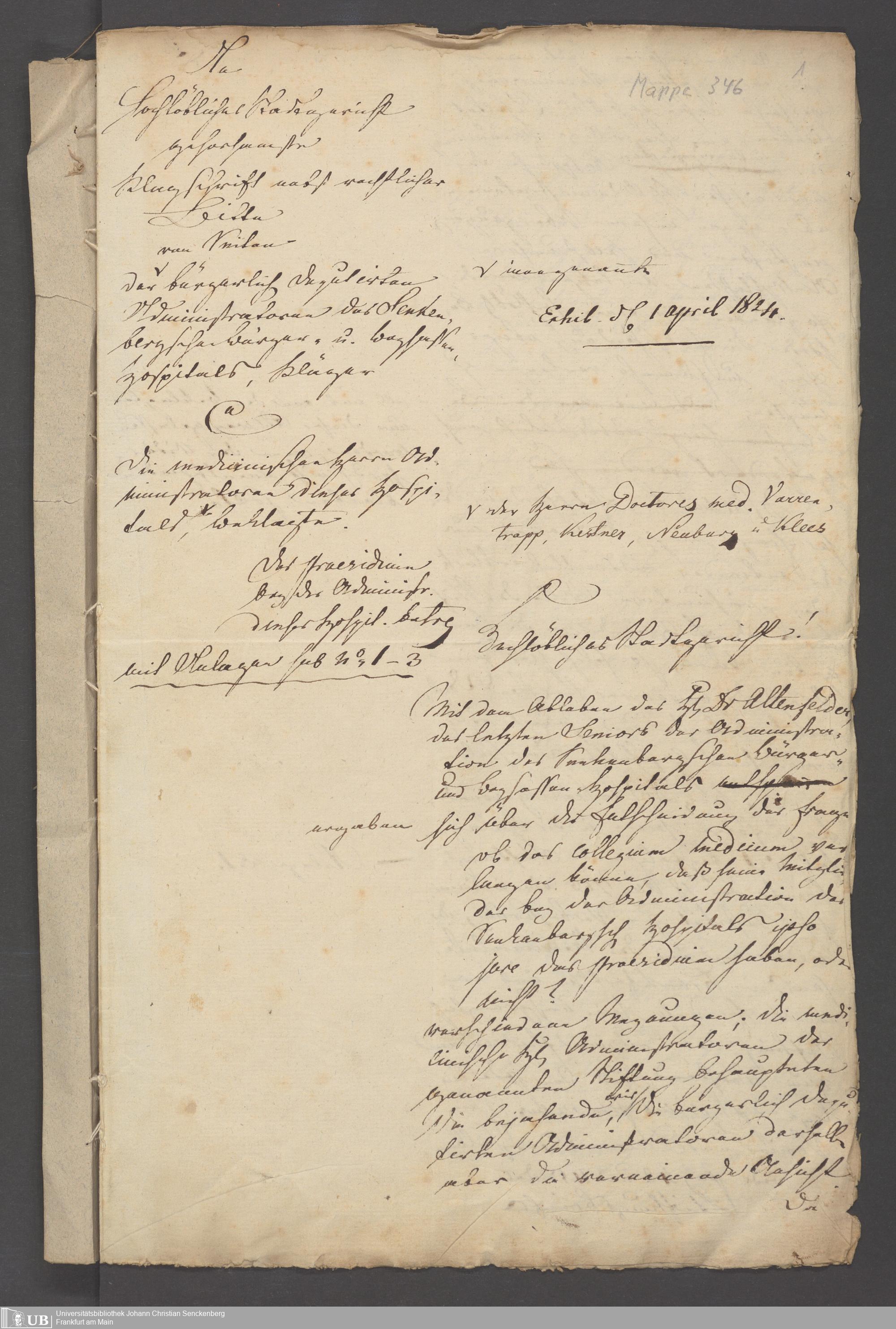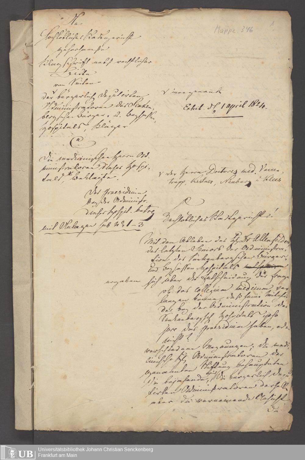 B 5 Dr. Senckenbergische Stiftung, 3 - Streit der ärztlichen und kaufmännischen Administration um das Präsidium (p. Na J.C.S. III.1.346)