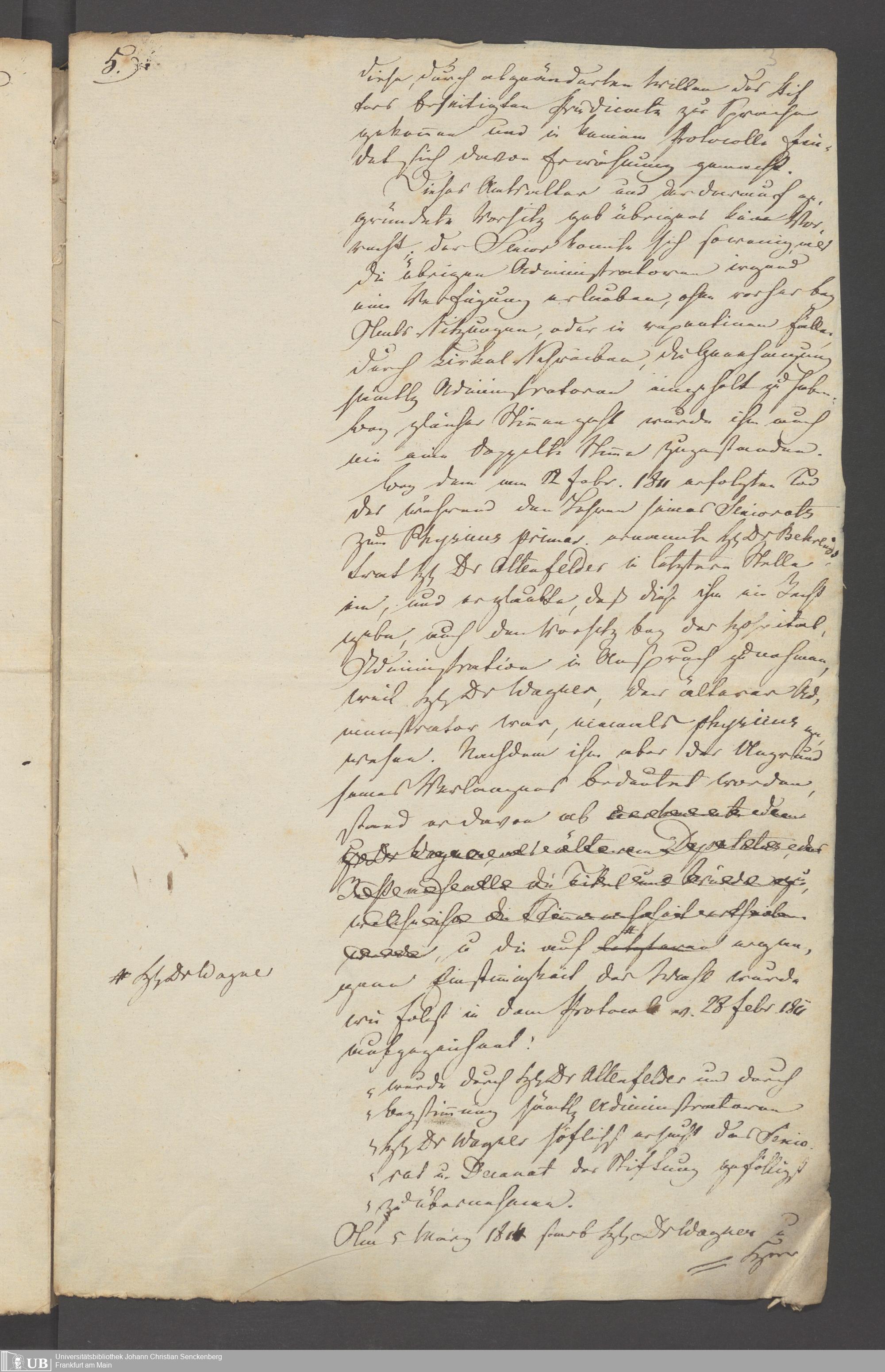 B 5 Dr. Senckenbergische Stiftung, 3 - Streit der ärztlichen und kaufmännischen Administration um das Präsidium (p. Na J.C.S. III.1.346)