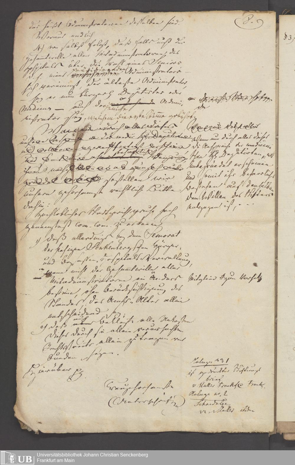 B 5 Dr. Senckenbergische Stiftung, 3 - Streit der ärztlichen und kaufmännischen Administration um das Präsidium (p. Na J.C.S. III.1.346)