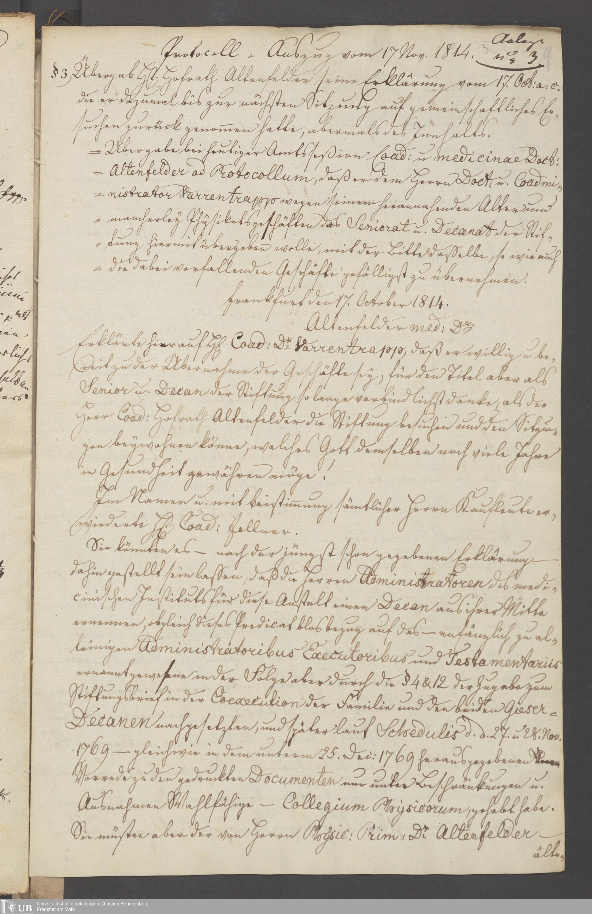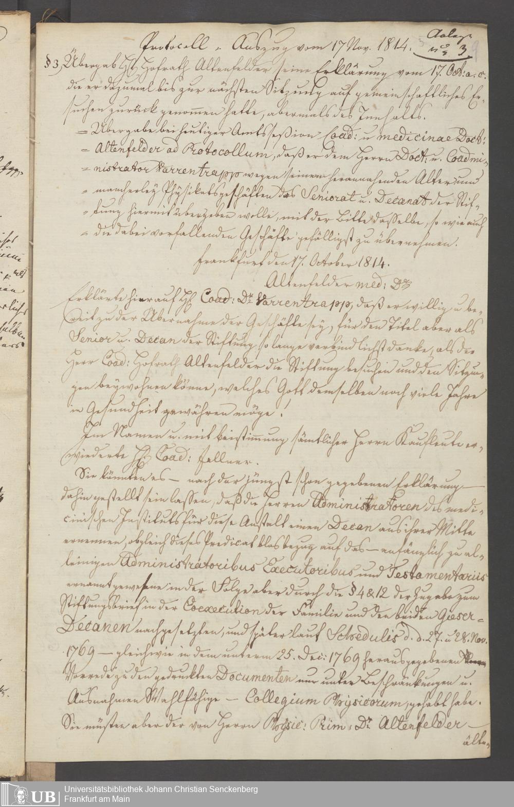 B 5 Dr. Senckenbergische Stiftung, 3 - Streit der ärztlichen und kaufmännischen Administration um das Präsidium (p. Na J.C.S. III.1.346)
