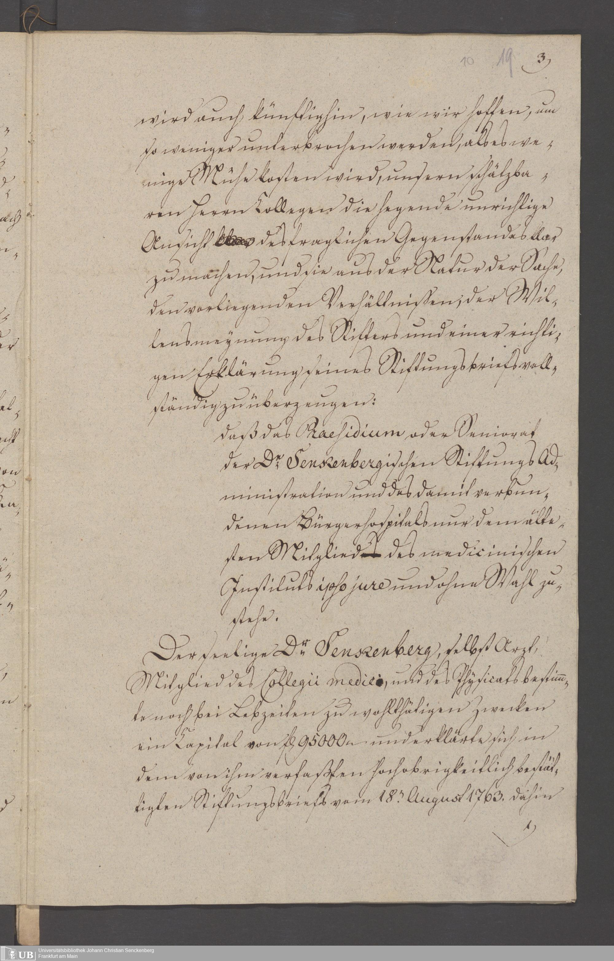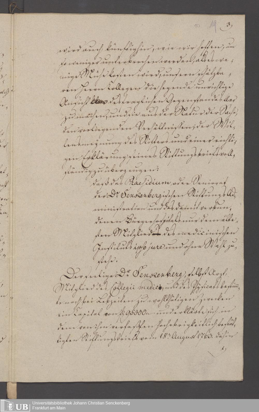 B 5 Dr. Senckenbergische Stiftung, 3 - Streit der ärztlichen und kaufmännischen Administration um das Präsidium (p. Na J.C.S. III.1.346)